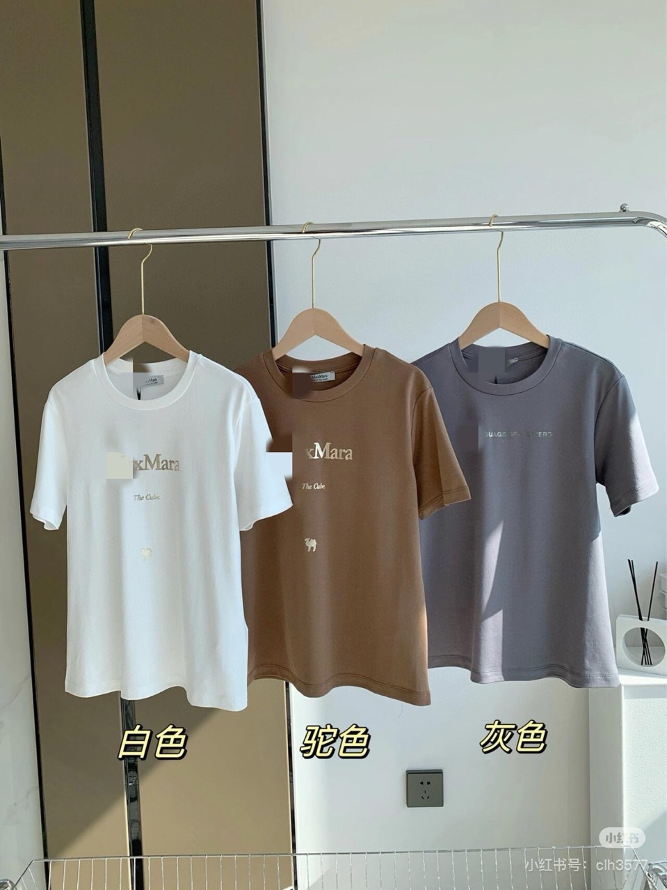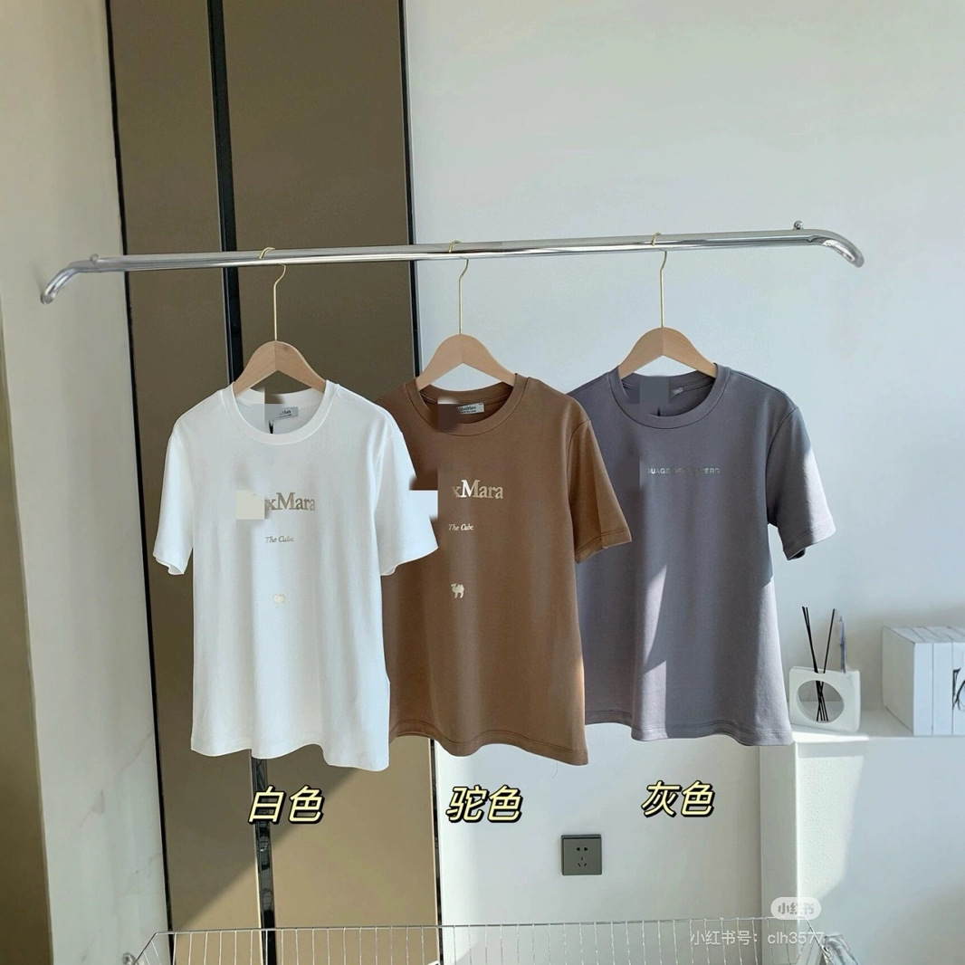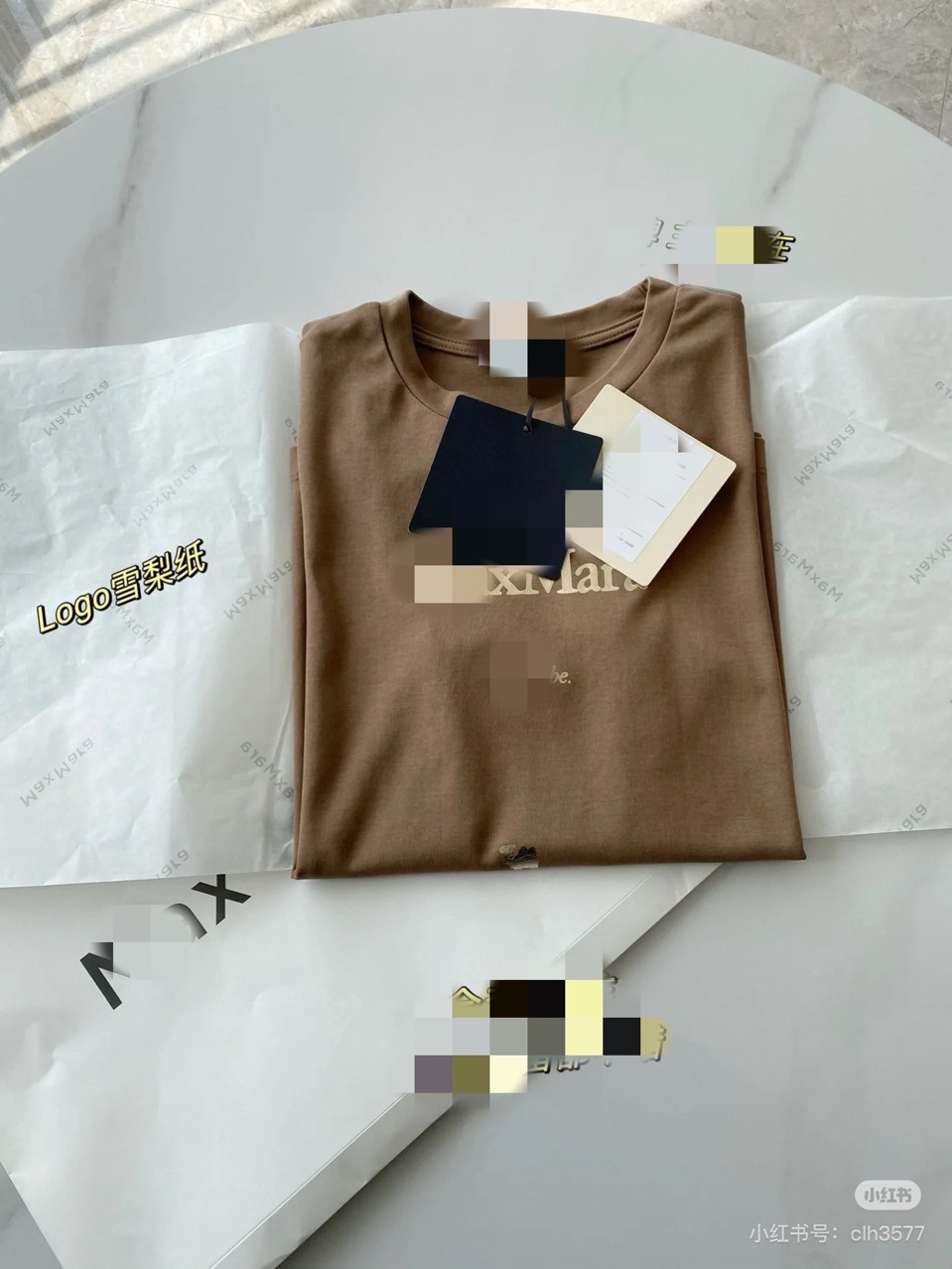 맥스의 봄과 여름 새로운 여성 브론징 카멜 편지 캐주얼 루즈 올 매치 슬림 핏 라운드 넥 반팔 티셔츠