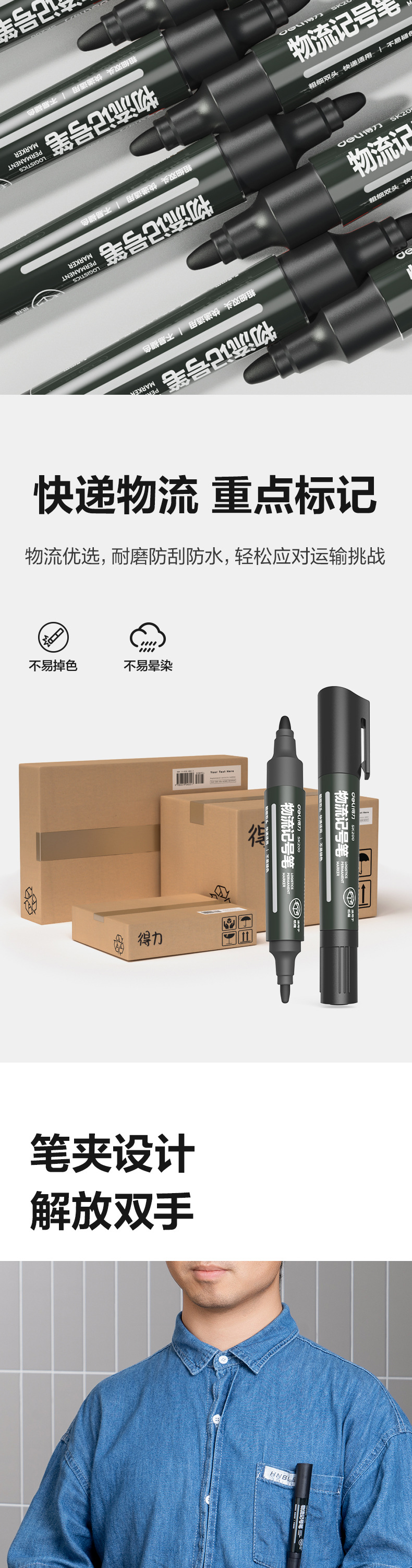 델리 SK200 더블 헤드 물류 마커 건설 현장에서 사용하기 위한 대용량 속건성 유성 방수 및 내광성 익스프레스 쓰기스토어 가기