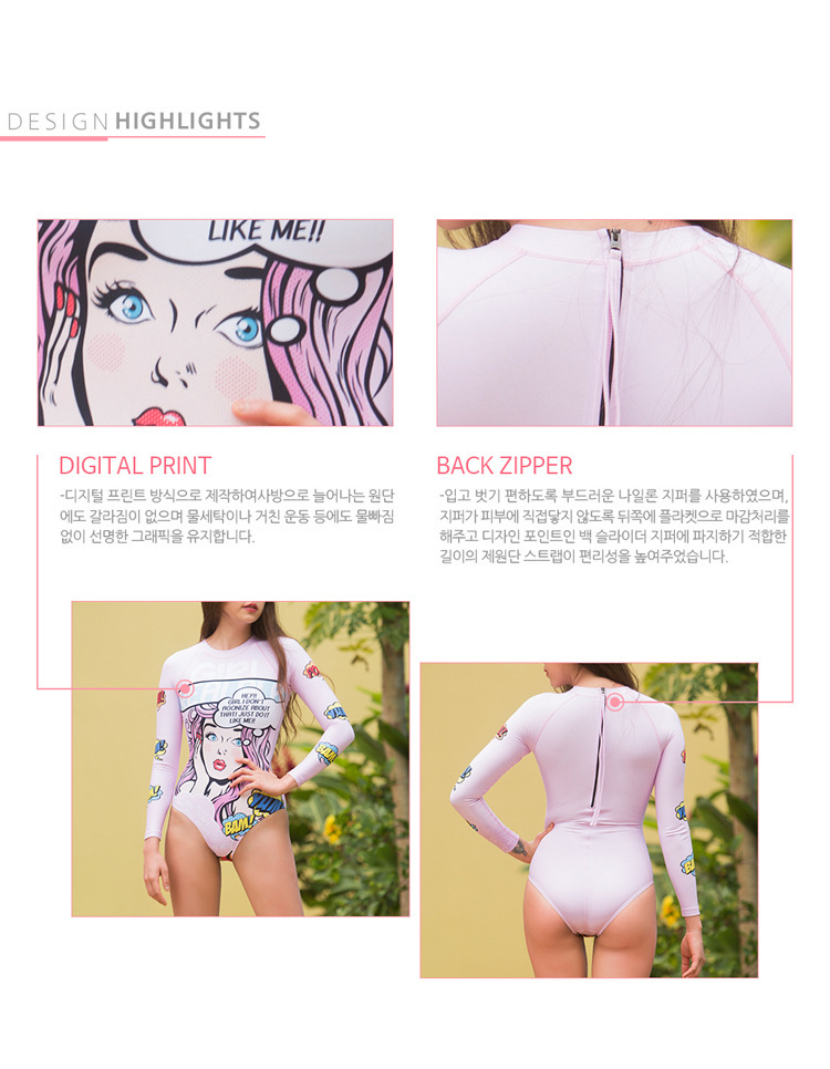 한국어 버전 2024 새로운 잠수복 여성용 원피스 속건성 스노클링 캐주얼 서핑 긴팔 수영복 보수적 인 자외선 차단
