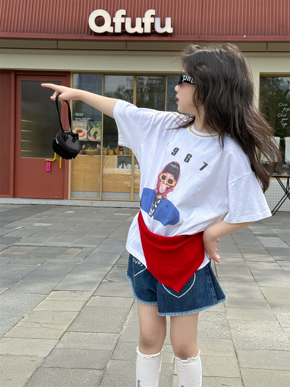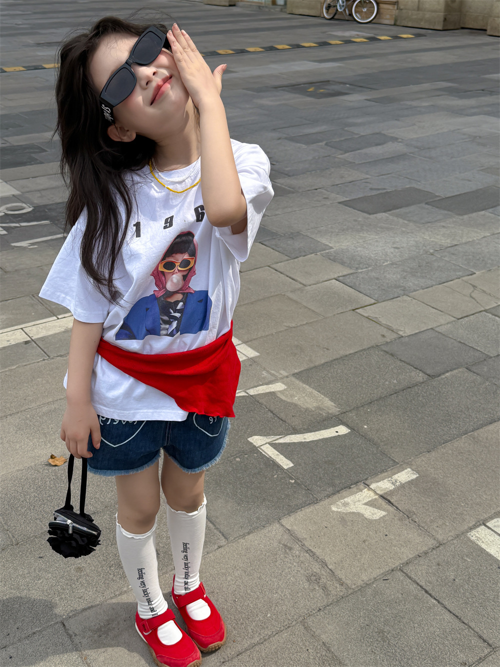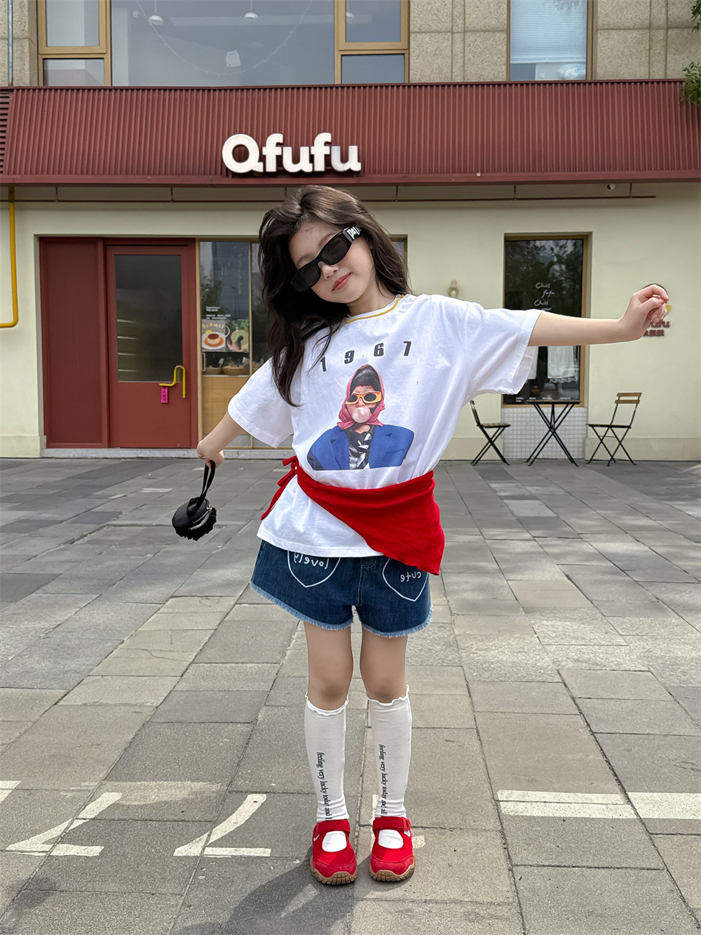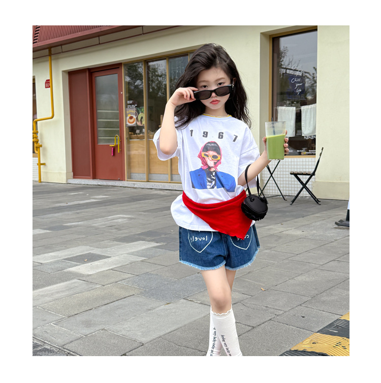 꽃과 아이 소녀 반바지 2025 여름 새로운 사랑 인쇄 데님 반바지 여름 올 매치 유행 어린이 반바지스토어 가기
