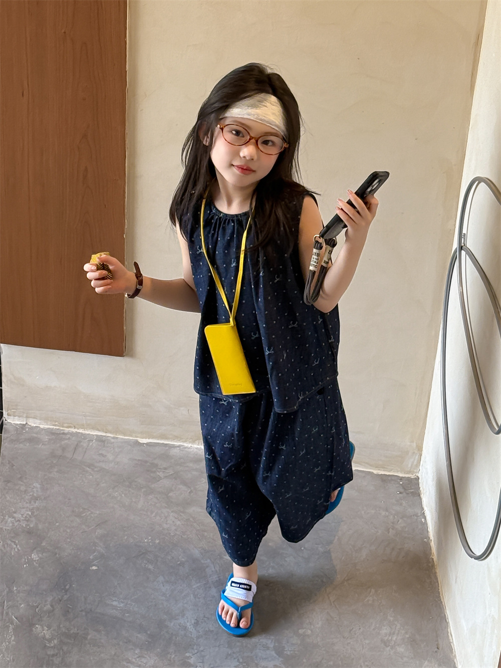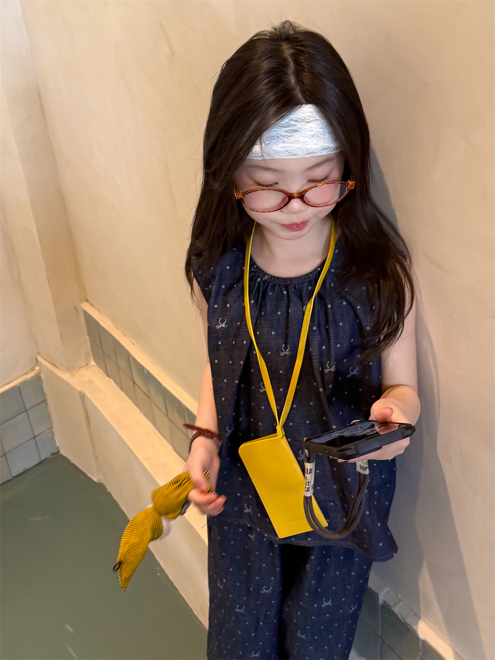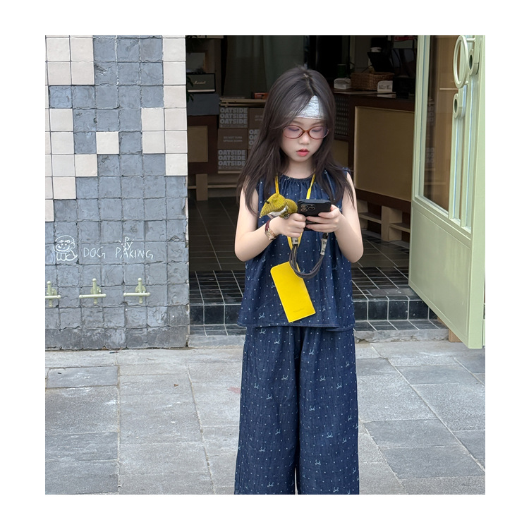 꽃과 어린이 의류 소녀 2025 세트 여름 새로운 웨이브 도트 데님 2 피스 어린이 서양식 올 매치 조수 어린이스토어 가기
