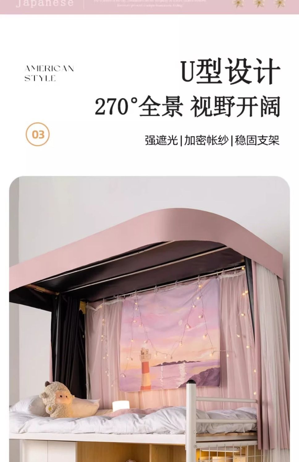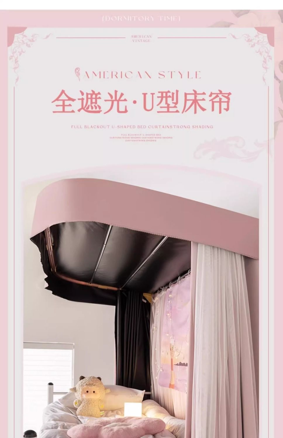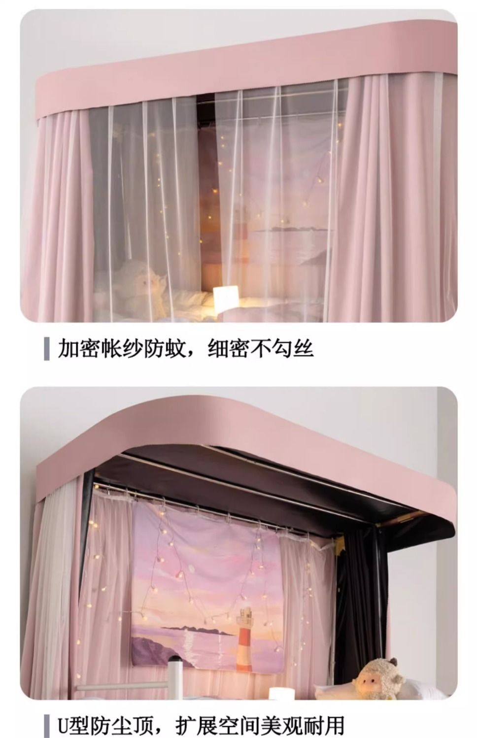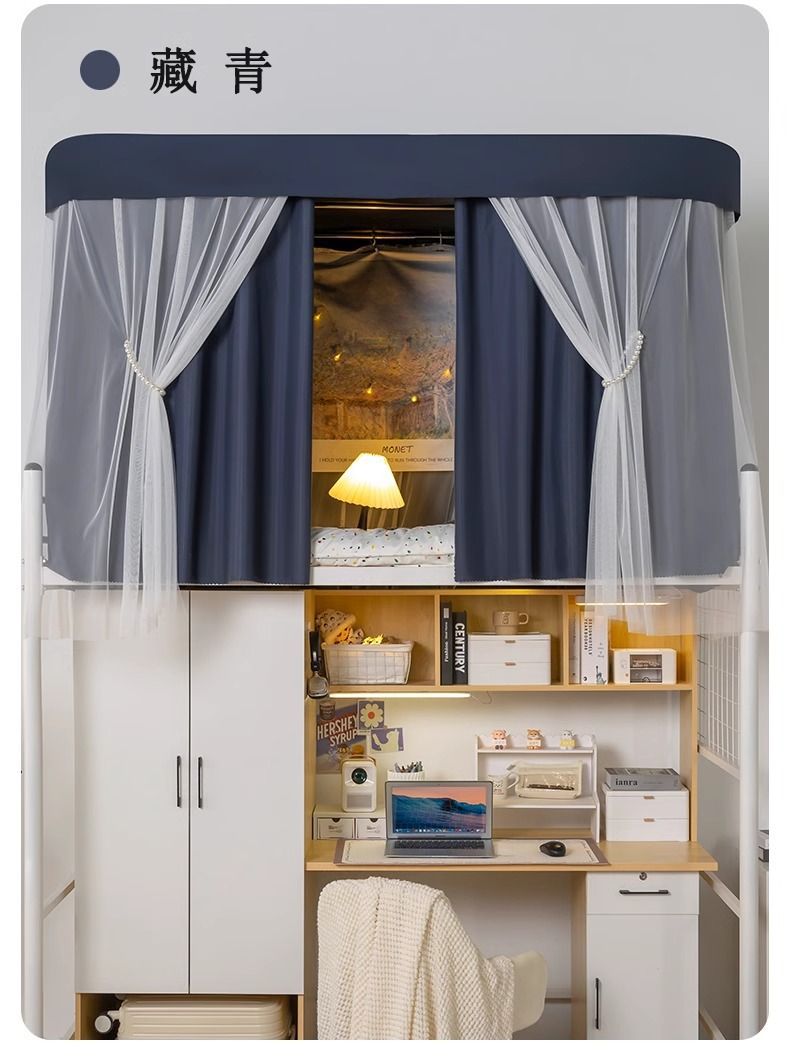 강력한 음영 U 자형 트랙 모기장 학생 기숙사 침대 커튼 기숙사 범용 음영 커튼스토어 가기