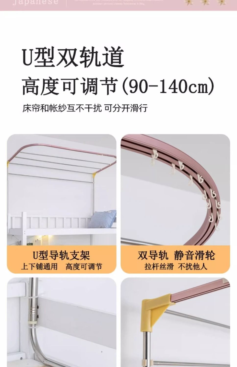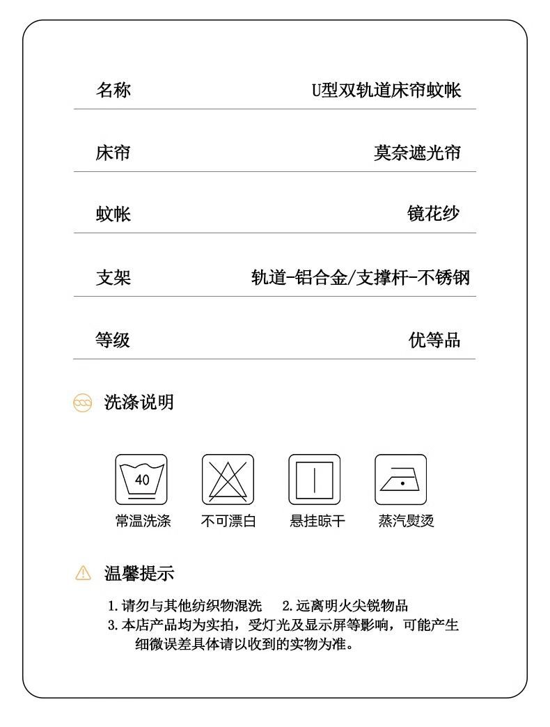 • Yuanqi Taotao [커튼 3개 + 상단] U자형 브래킷 모노레일