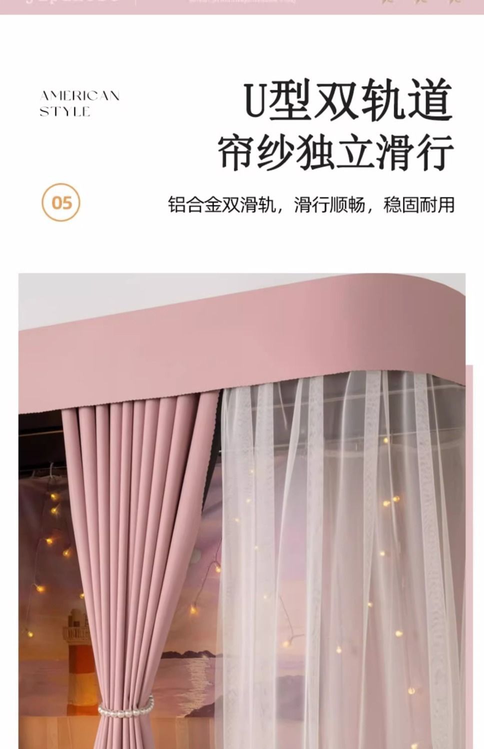 • Yuanqi Taotao [커튼 3개 + 실 2개 + 상단] 이중 트랙