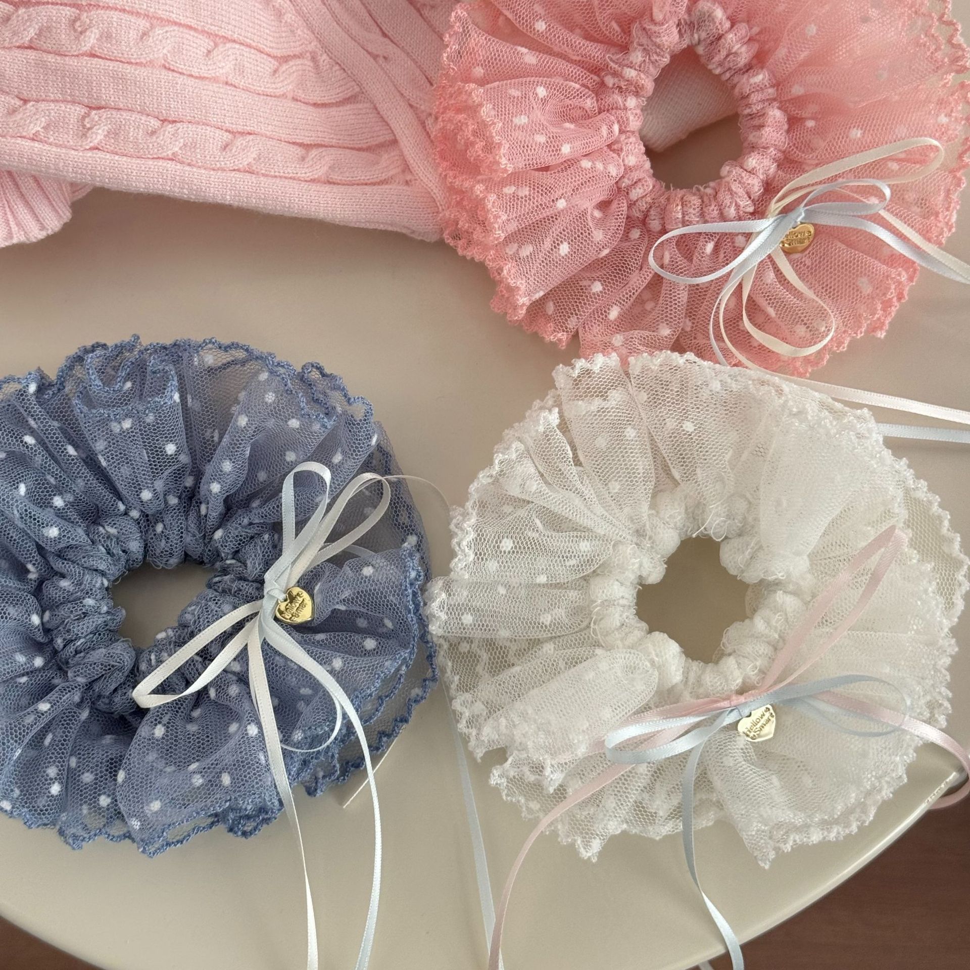 여자를 위한 새로운 한국 스타일의 부드러운 레이스 머리끈, 여자를 위한 몽환적인 리본 리본 물방울 무늬 머리끈, 여자를 위한 달콤한 헤어 액세서리