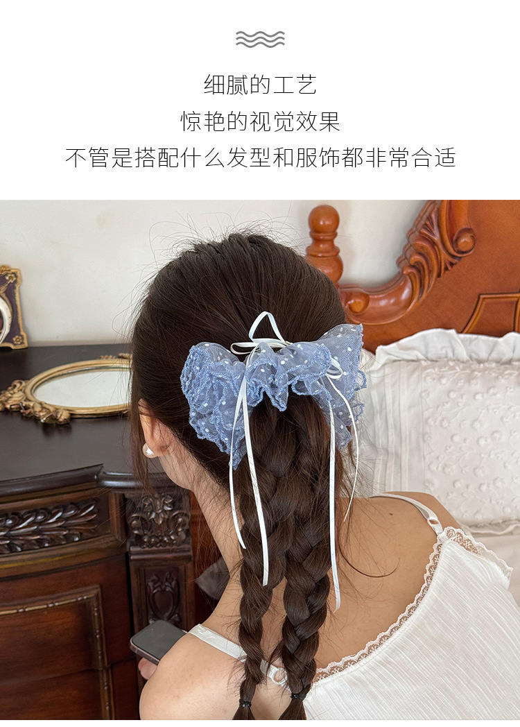 여자를 위한 새로운 한국 스타일의 부드러운 레이스 머리끈, 여자를 위한 몽환적인 리본 리본 물방울 무늬 머리끈, 여자를 위한 달콤한 헤어 액세서리스토어 가기