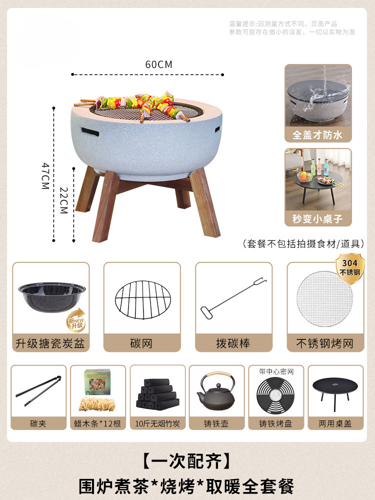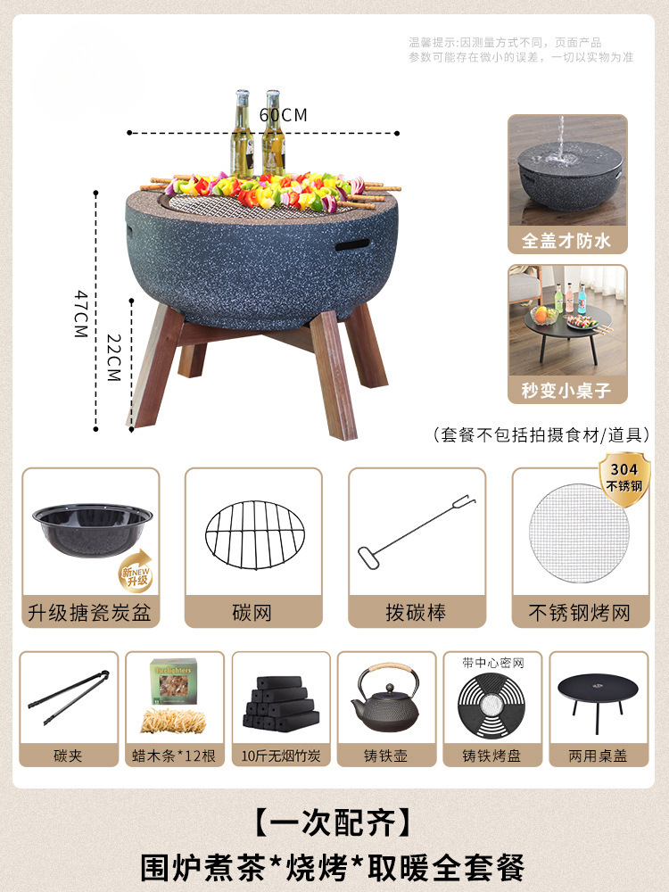 차를 끓이고 불을 켤 수 있는 난로 세트, 가정용 실내 안뜰 바베큐 장비, 겨울 난방 화로 바베큐 세트스토어 가기