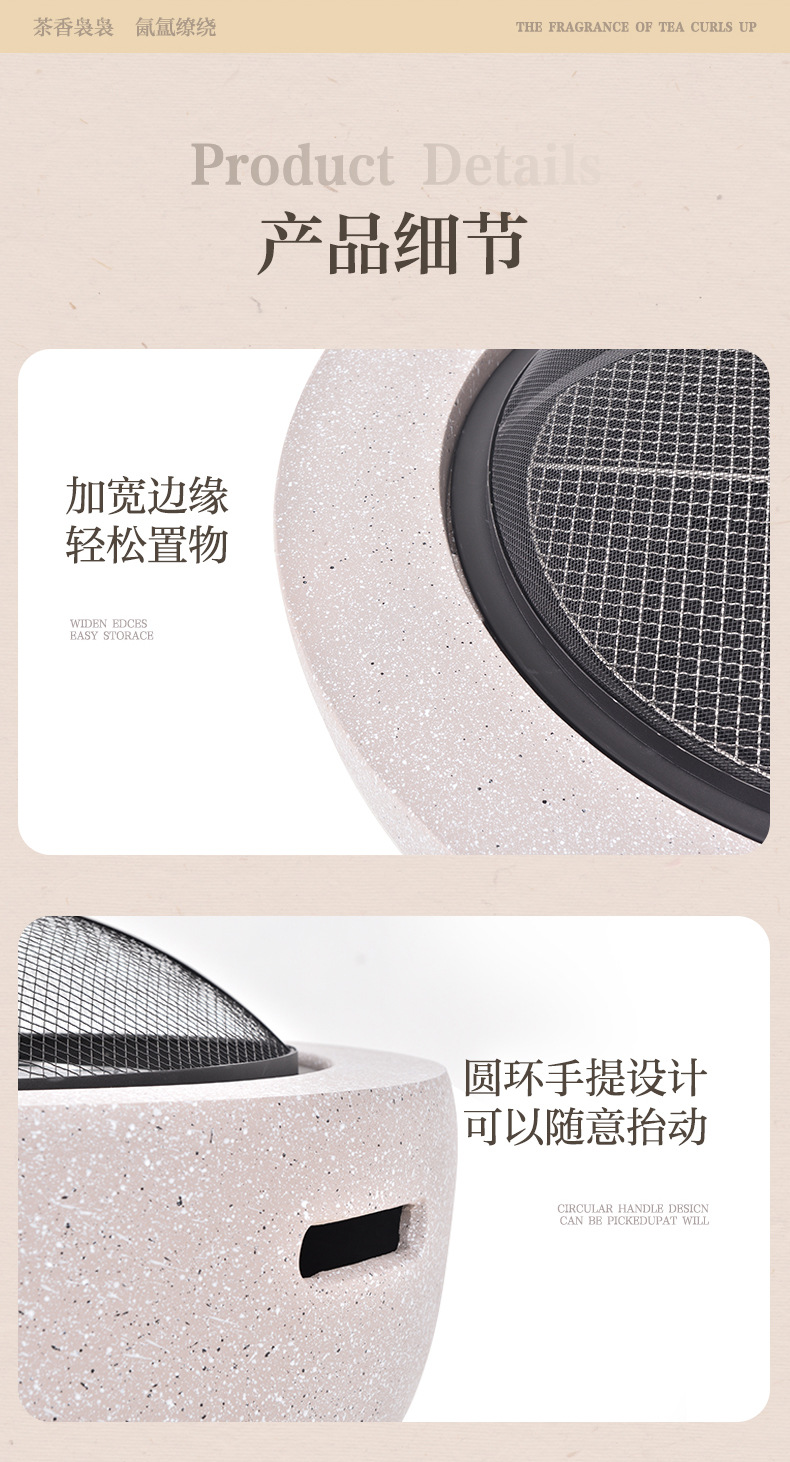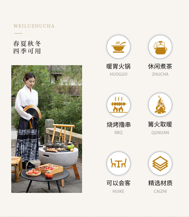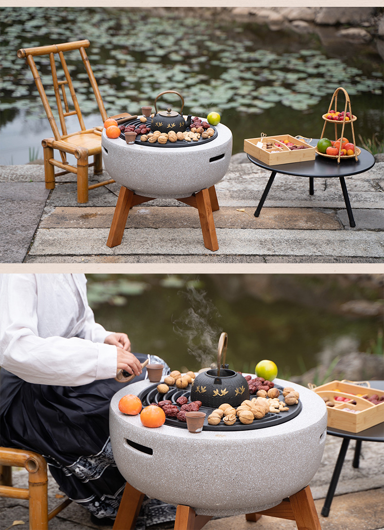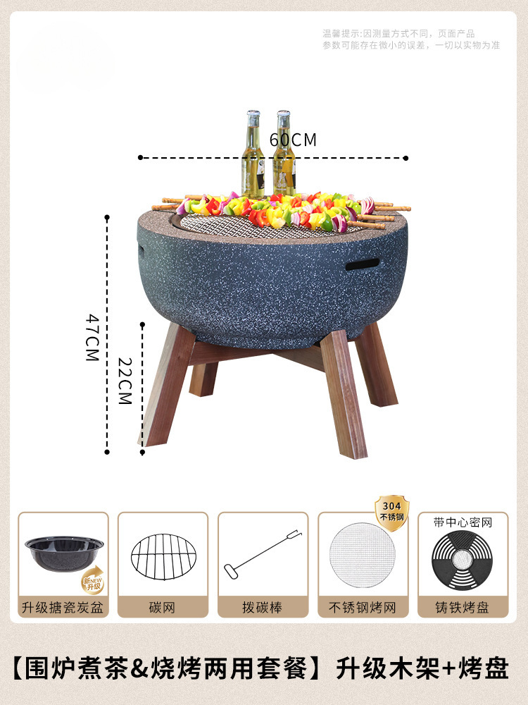 • [새로운 어두운 색 난로에서 차 만들기 및 바베큐 이중 목적 패키지] 업그레이드된 나무 프레임 + 항아리와 냄비 +