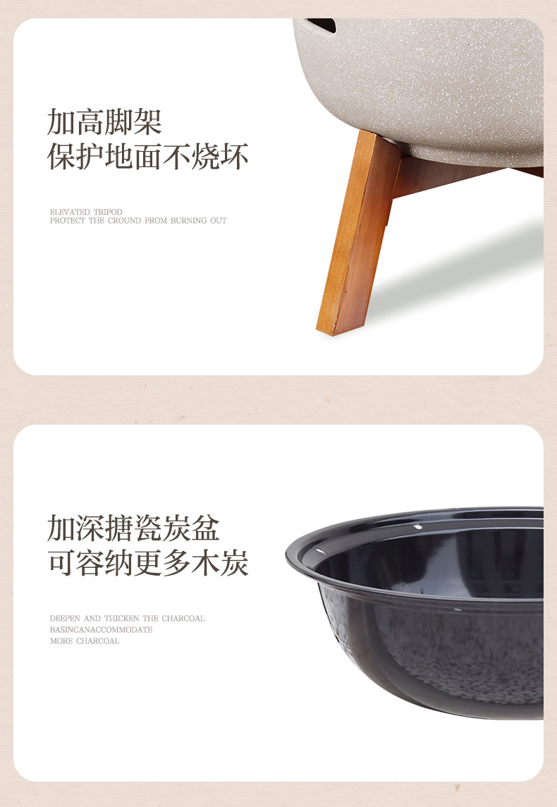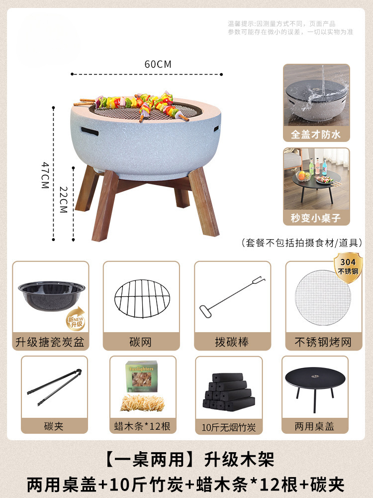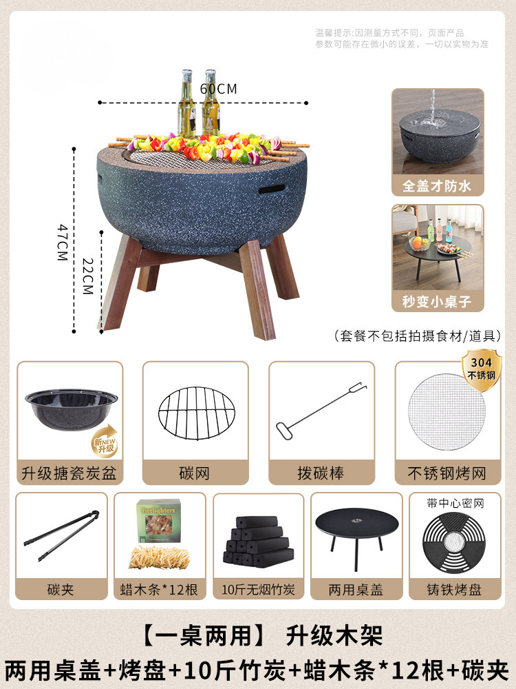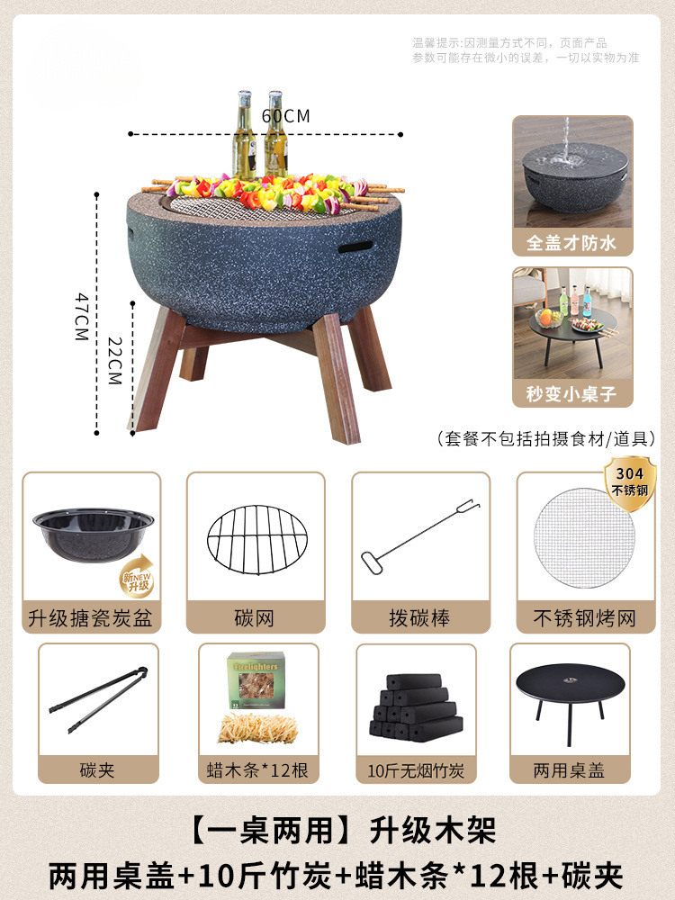• [새로운 다크 컬러 테이블 겸용] 업그레이드된 나무 프레임 + 커버 + 주철판 + 5kg 대나무 숯 +