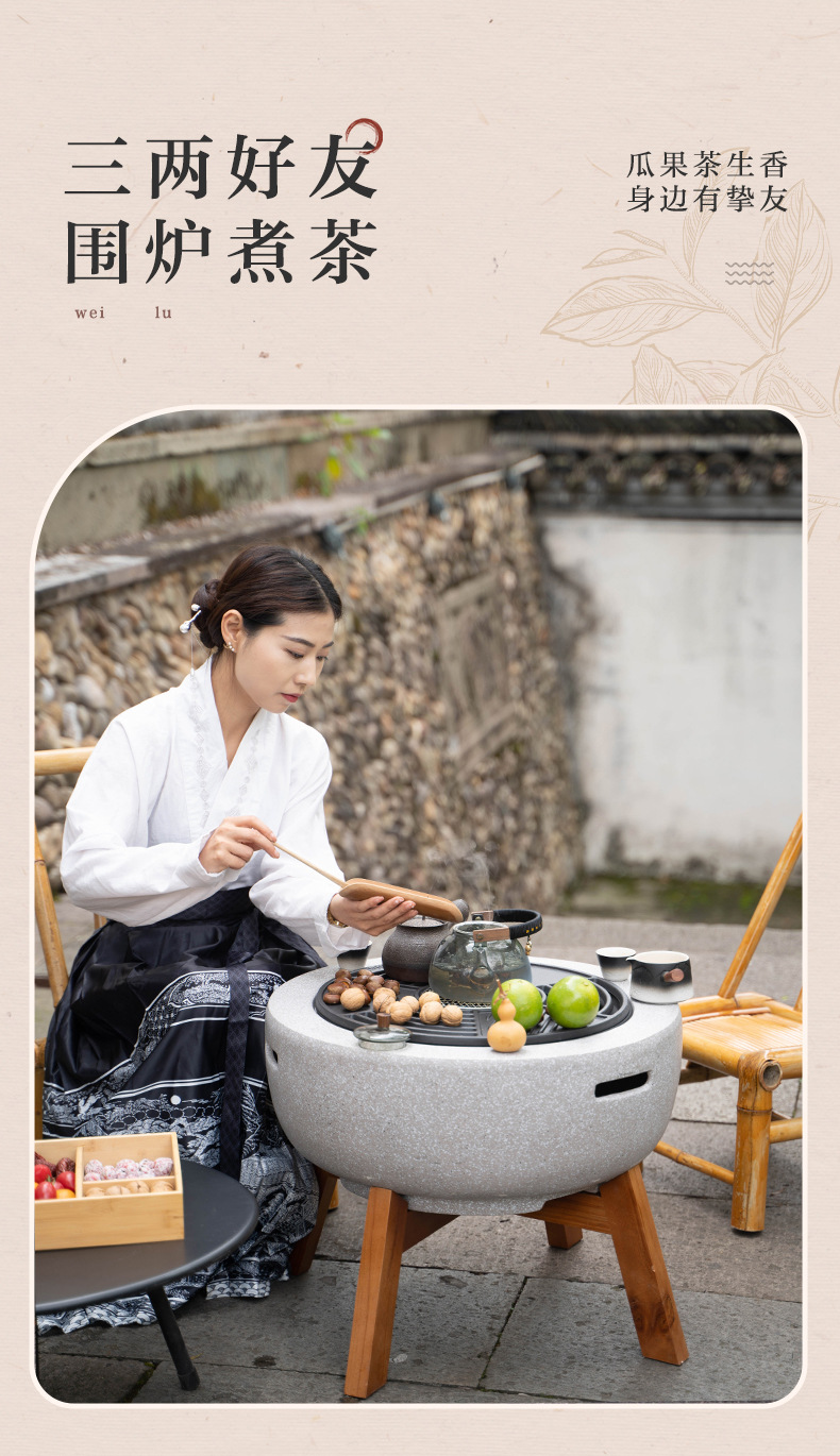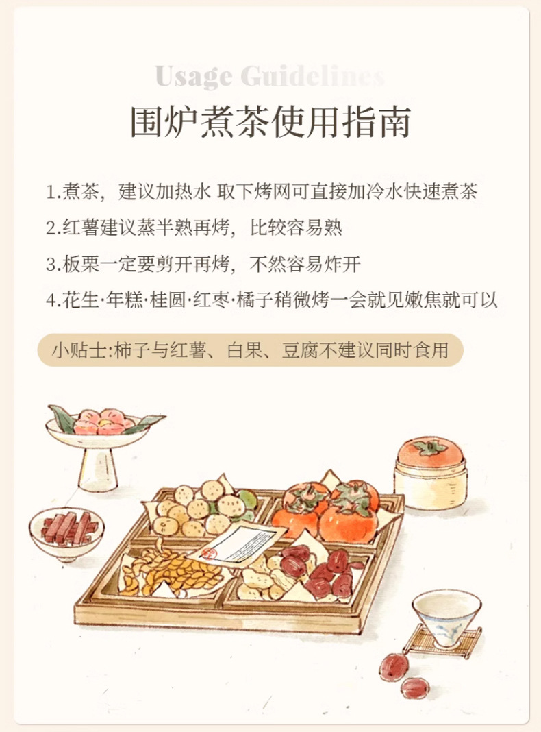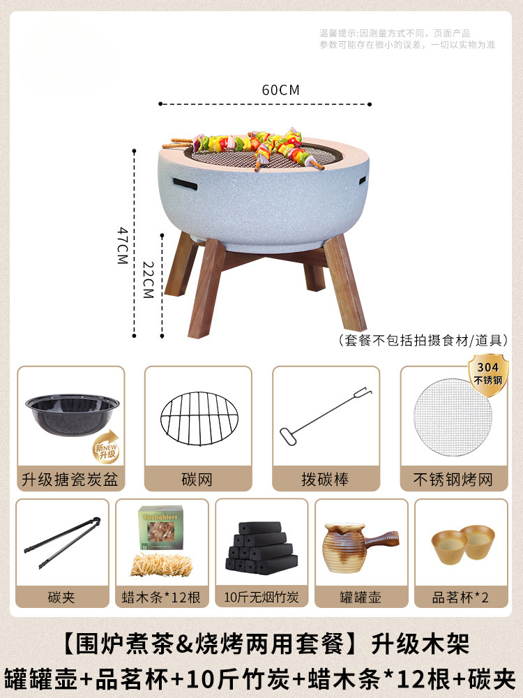 • [난로 옆 차와 바비큐 겸용 정식] 업그레이드된 나무틀 + 항아리와 냄비 + 찻잔 + 10개