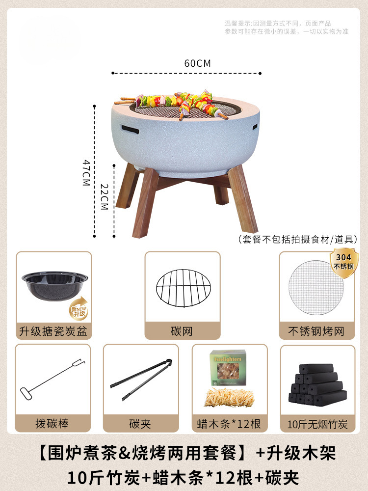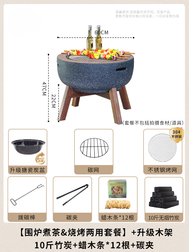 • [난로 옆 차 만들기 & 바비큐 겸용 정식] + 업그레이드된 나무 프레임 + 대나무 숯 5kg개 + 왁스 나무 스트립