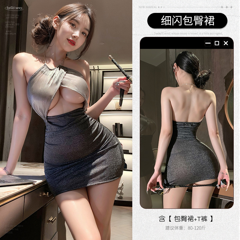 Manyan 섹시한 란제리 여성의 섹시한 고급 플래시 넥 실버 아름다운 백 나이트 클럽 왕실 자매 엉덩이 비서 유니폼 9180