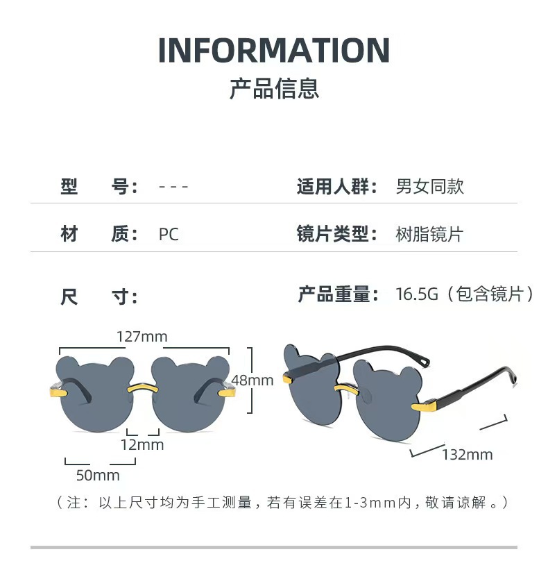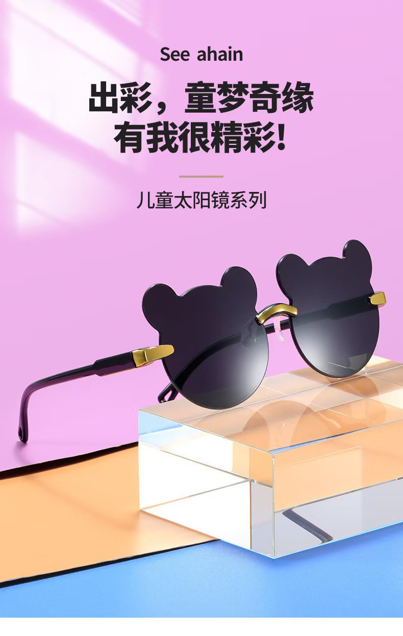 새로운 곰 그라디언트 어린이 차양 선글라스 경계없는 귀여운 만화 선글라스 투명 안경