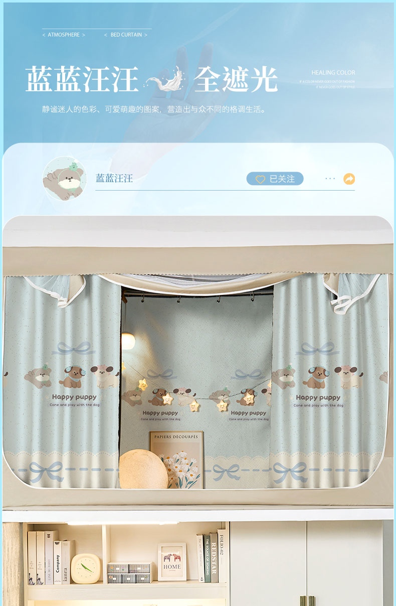 ✅ 대학생 기숙사 차광 침대 커튼 모기장 일체형 빌트인 브래킷 이층 침대 하단 침대 완전 밀폐형 창문