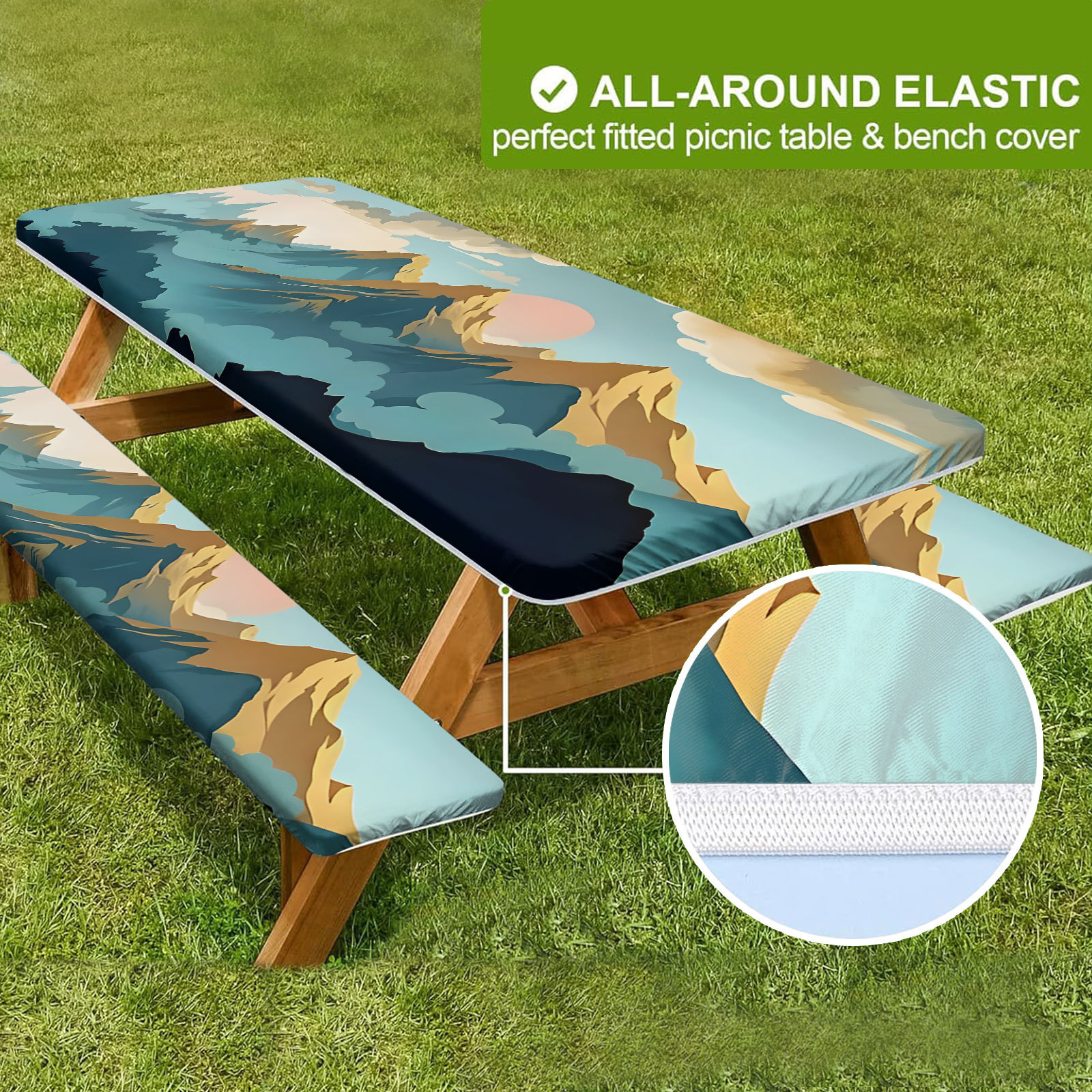 야외 테이블과 의자용 방오 3종 세트, 피크닉 캠핑 테이블과 의자 커버, 테이블과 의자 장식 커버, 사진으로 맞춤 제작 가능, 풍경 시리즈