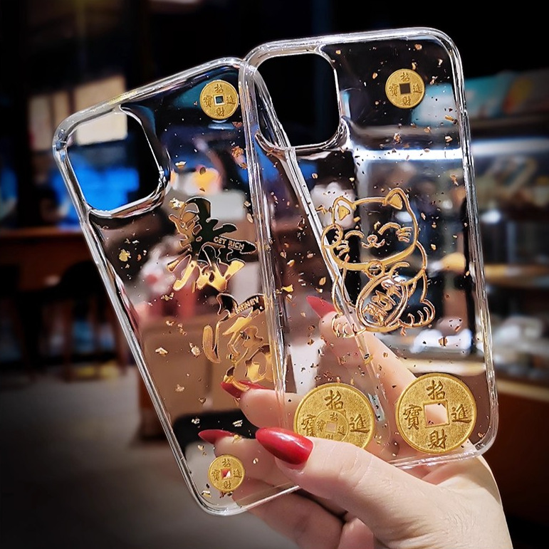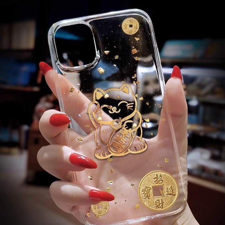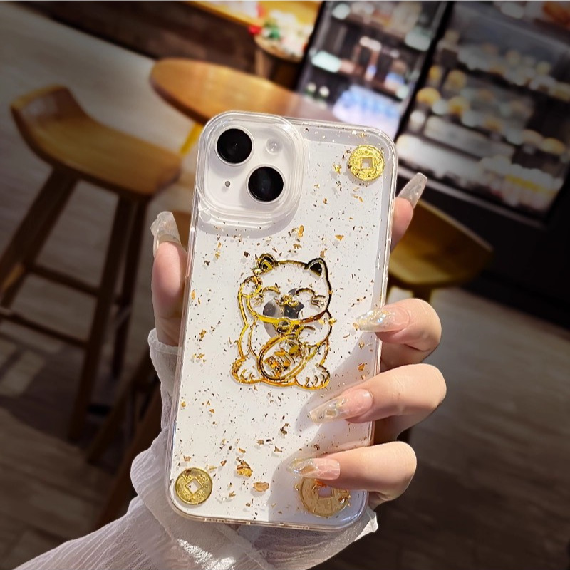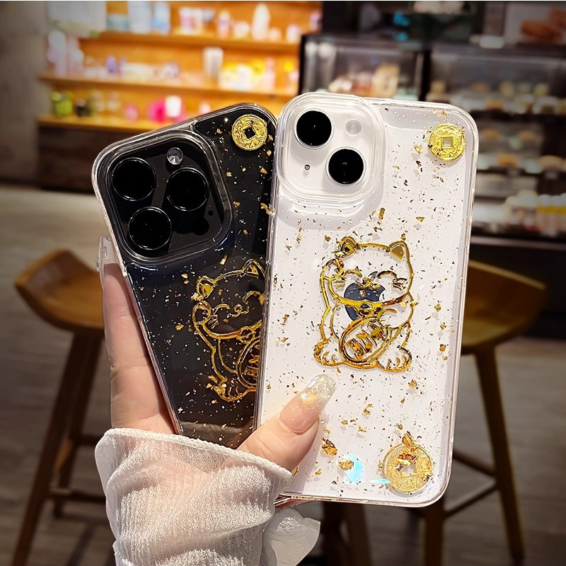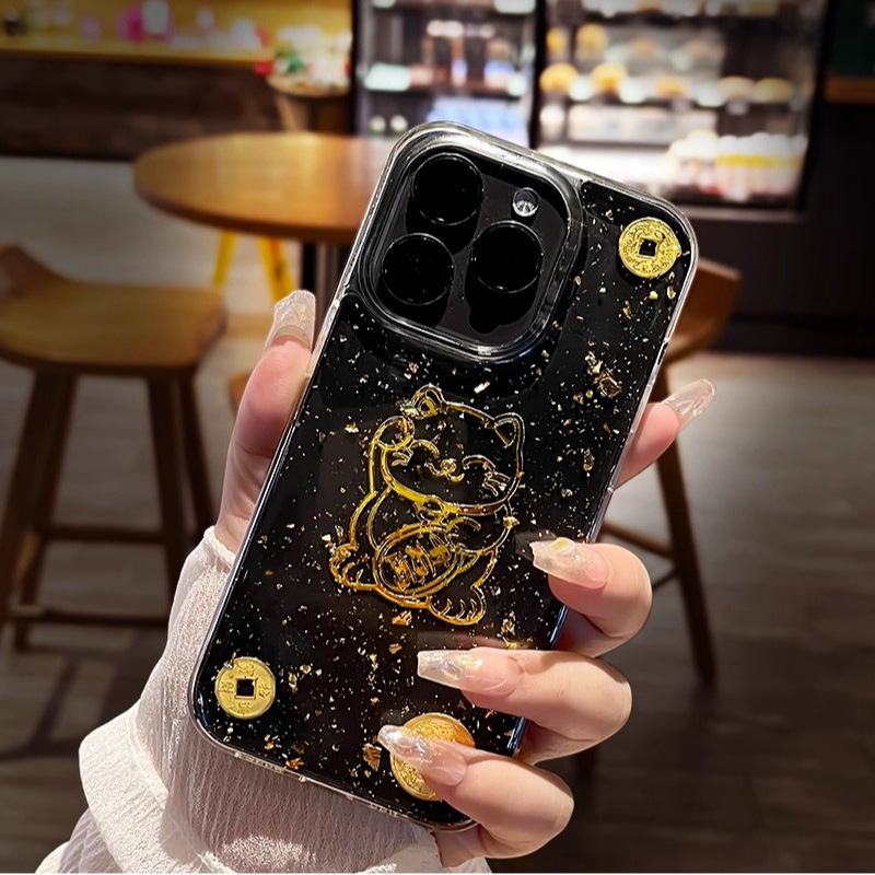 아이폰17프로맥스 새해 휴대폰 케이스, 금박 장식, 아이폰16프로맥스 신형, 15 행운의 고양이, 14스토어 가기