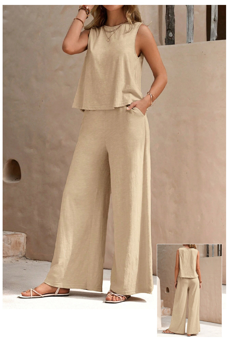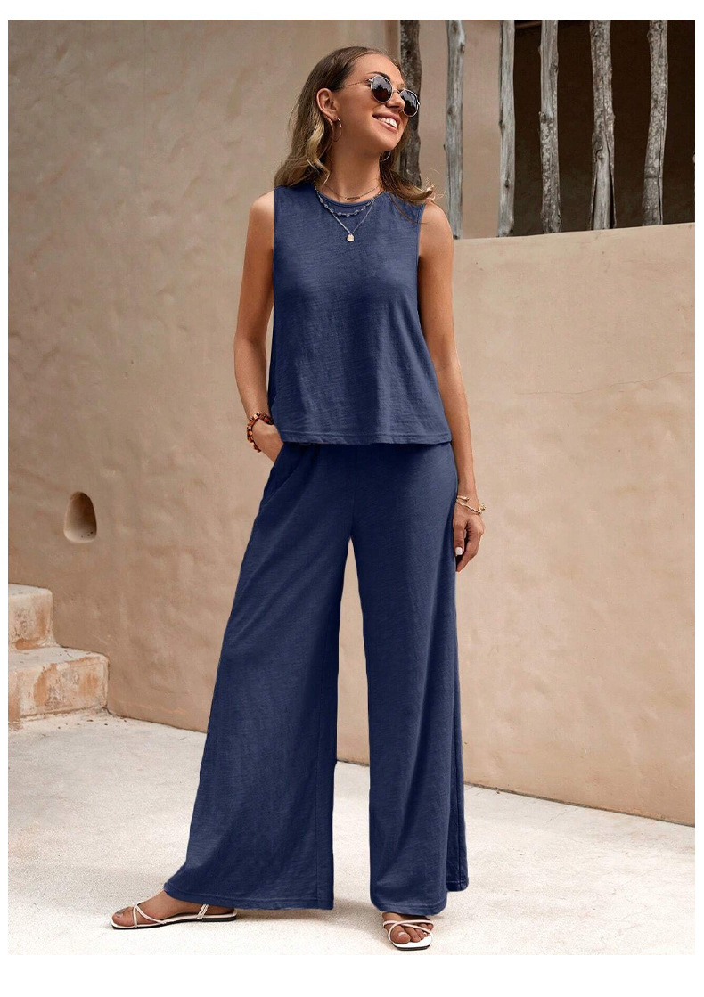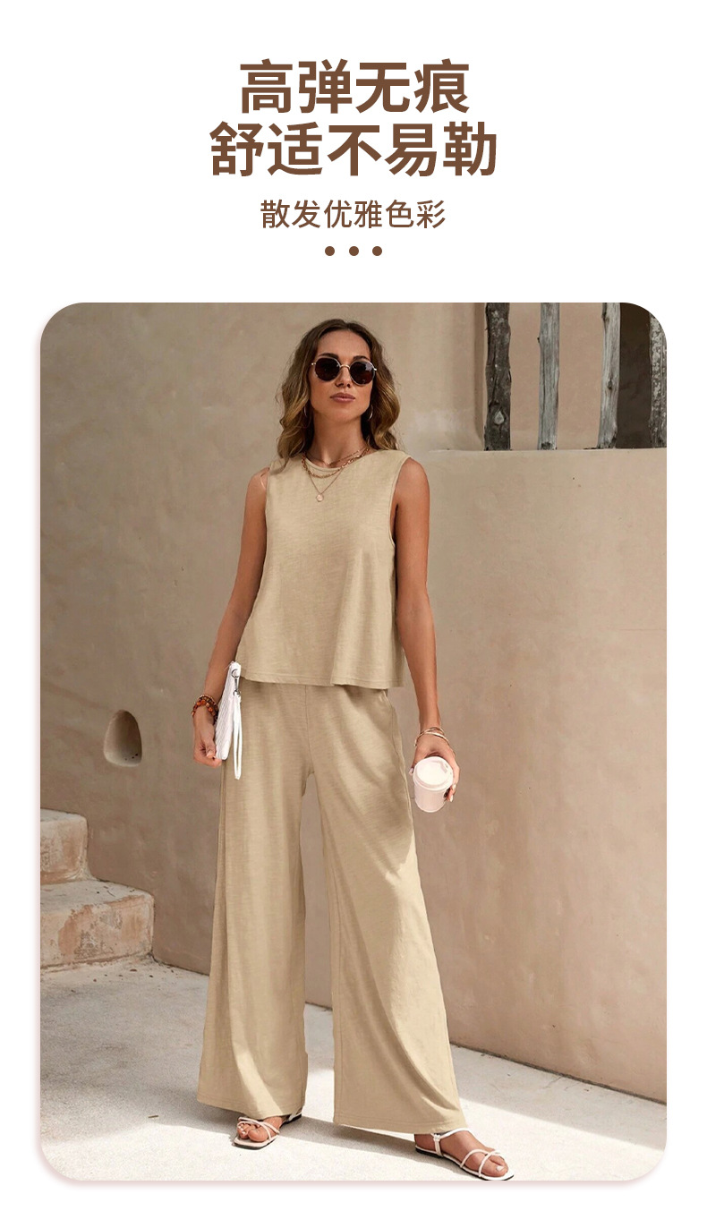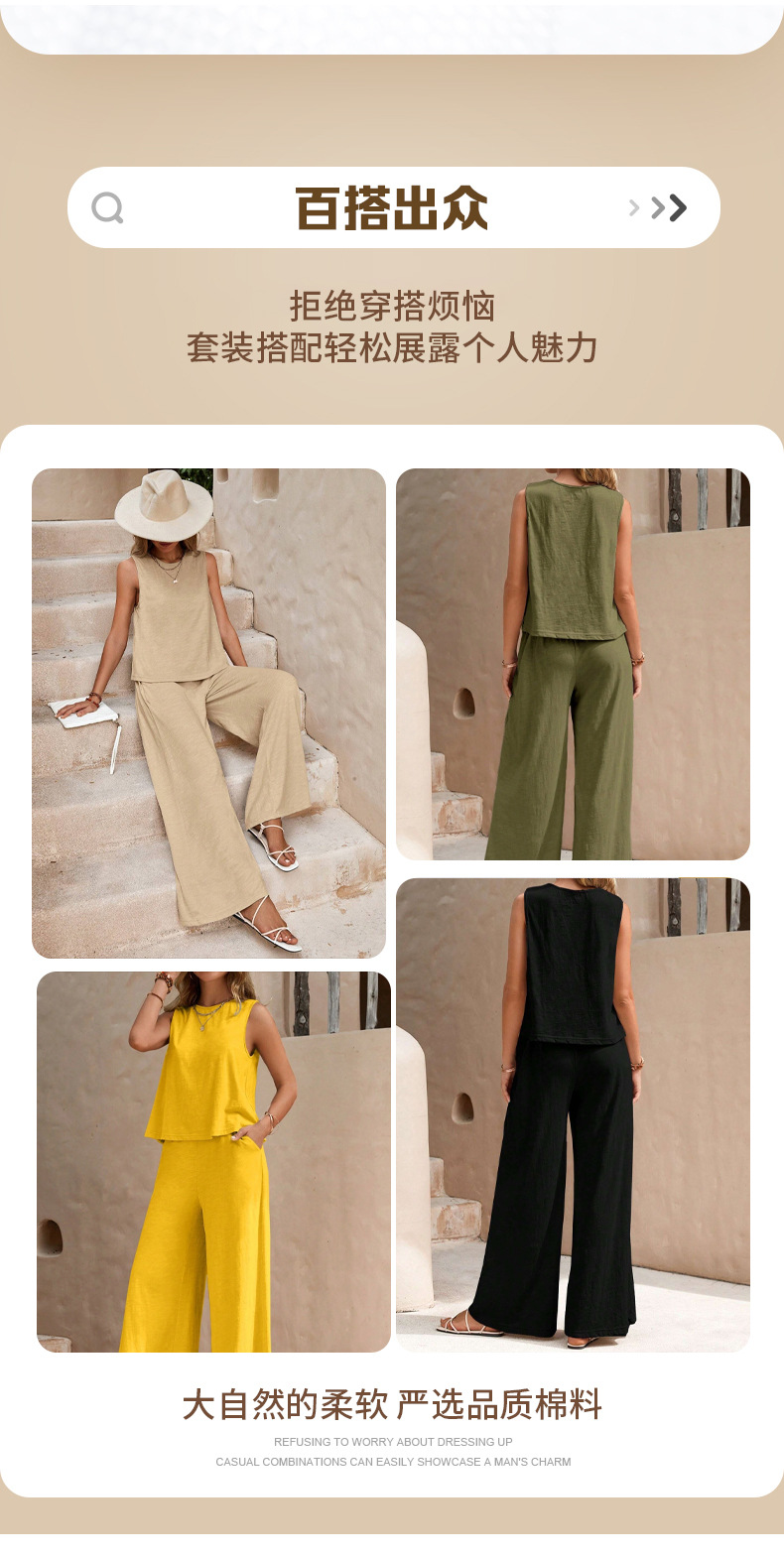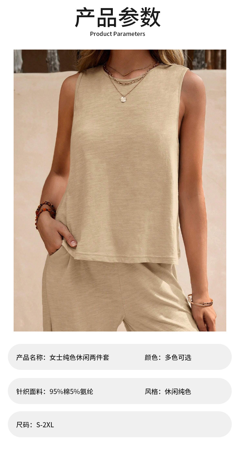 2025 여름 새로운 투피스 여성 유럽과 미국 패션 올 매치 느슨한 풀오버 라운드 넥 캐주얼 코튼 세트 여성스토어 가기