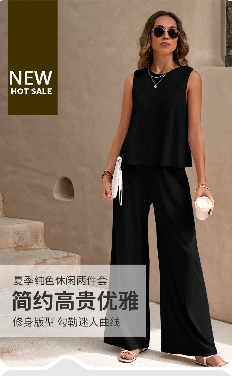 2025 여름 새로운 투피스 여성 유럽과 미국 패션 올 매치 느슨한 풀오버 라운드 넥 캐주얼 코튼 세트 여성
