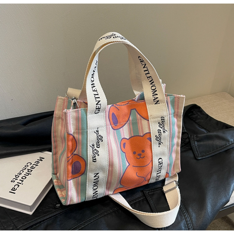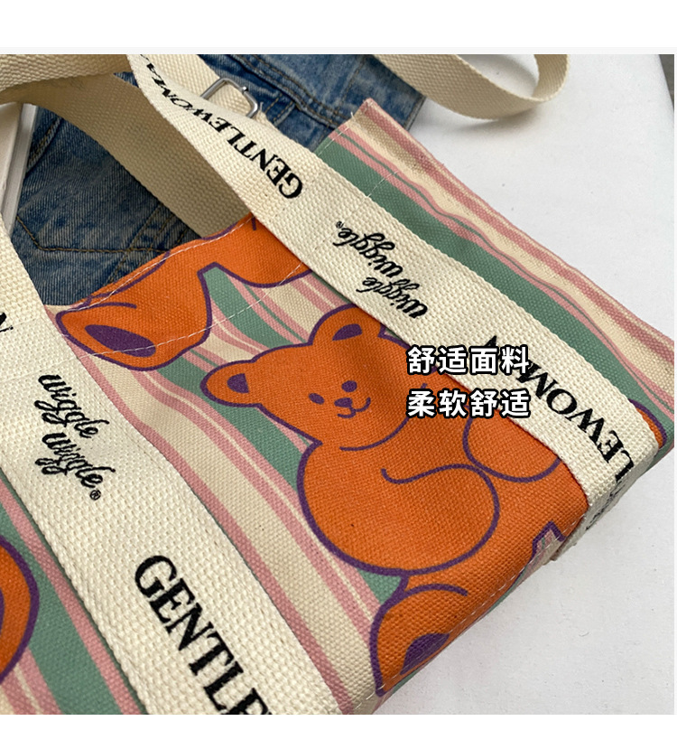 2024 여름 귀여운 곰 올매치 하이 엔드 틈새 크로스 바디 백 여성 와이드 어깨 스트랩 인쇄 캔버스 가방 핸드백스토어 가기
