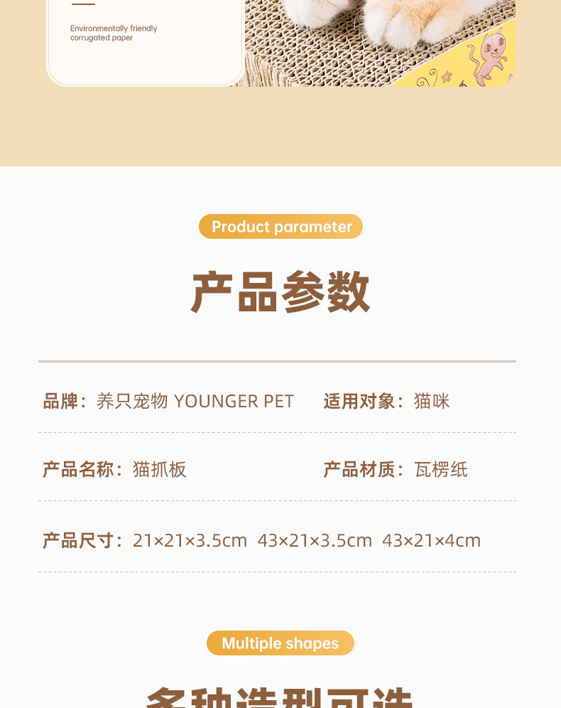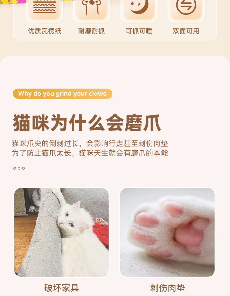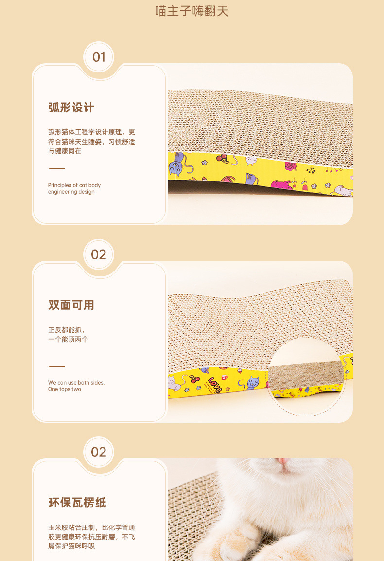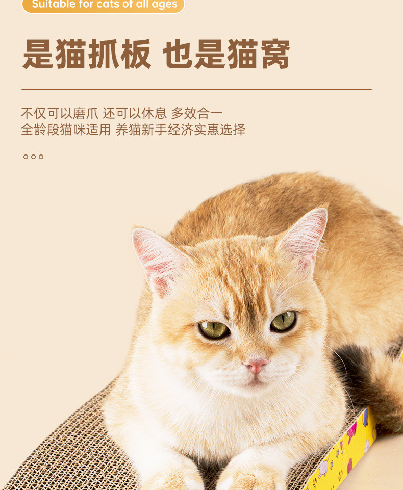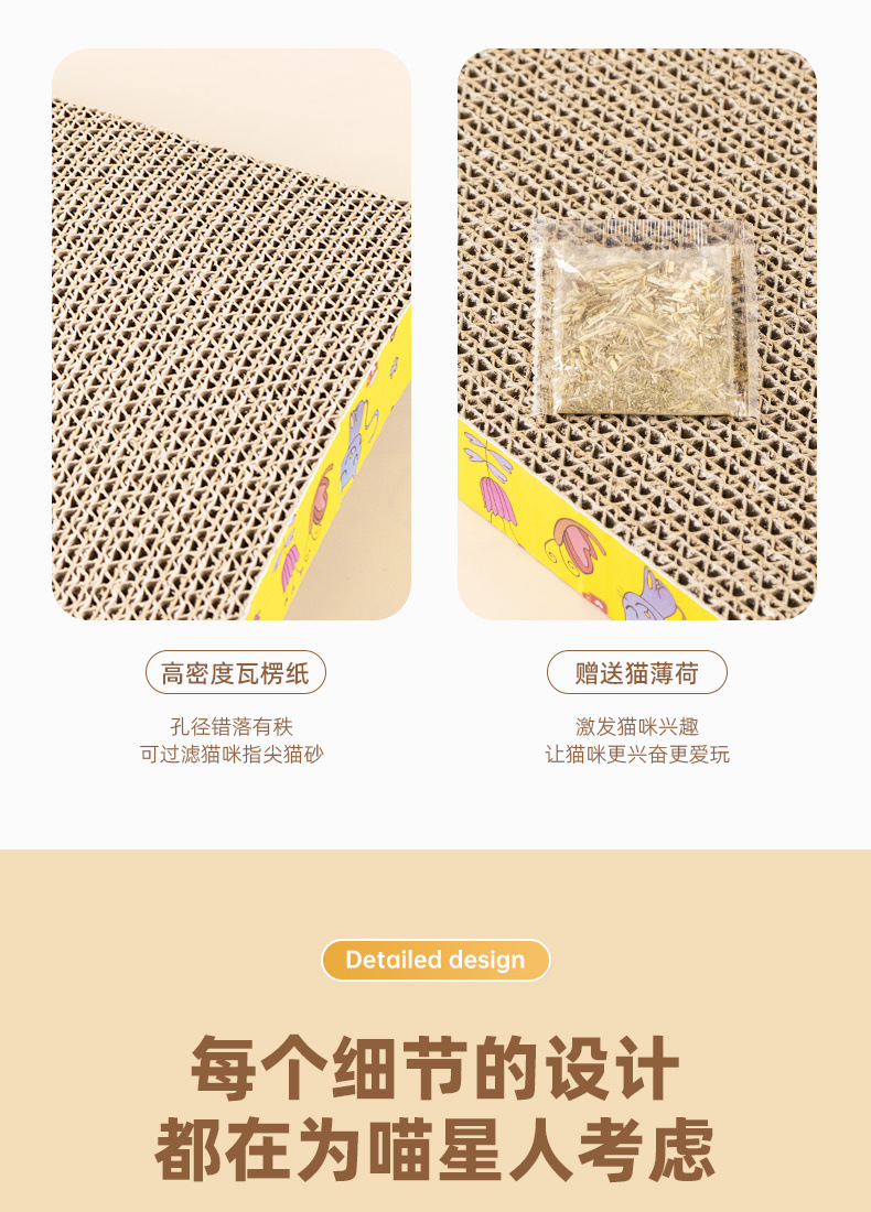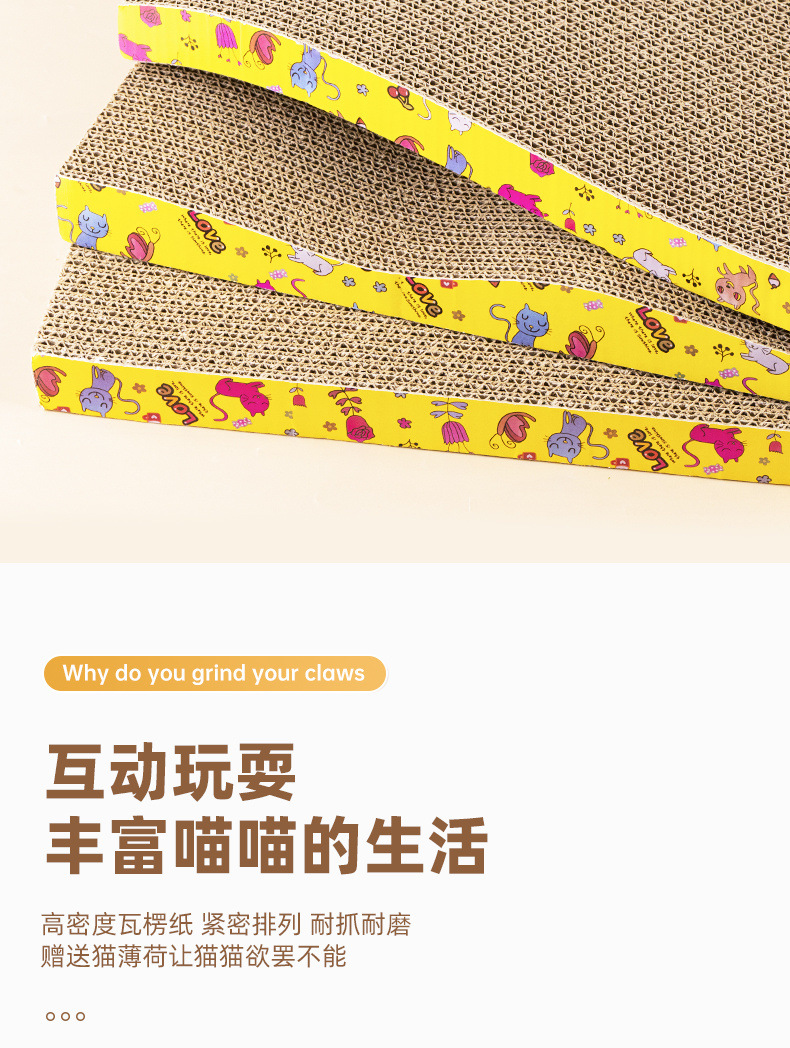 두꺼운 골판지 고양이 둥지와 고양이 스크래치 보드, 일체형 양면, 발톱 연삭 및 휴식, 이중 목적, 내마모성, 미끄럼 방지, 사계절 모델