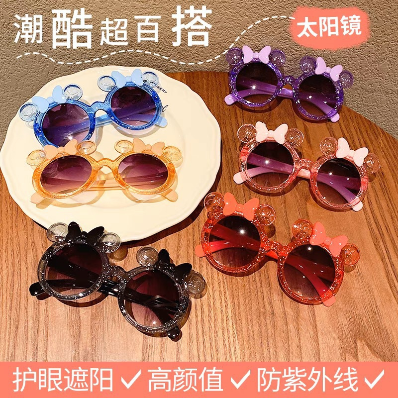도매 귀엽고 세련된 크리스탈 리본 어린이 선글라스 남아 여아 선글라스 만화 자외선 차단 선글라스스토어 가기