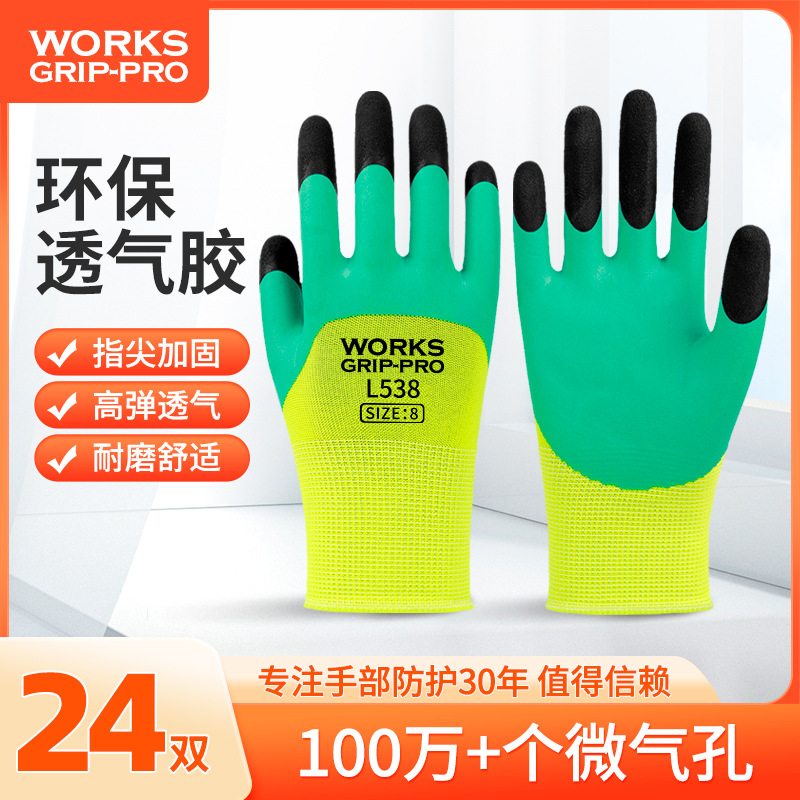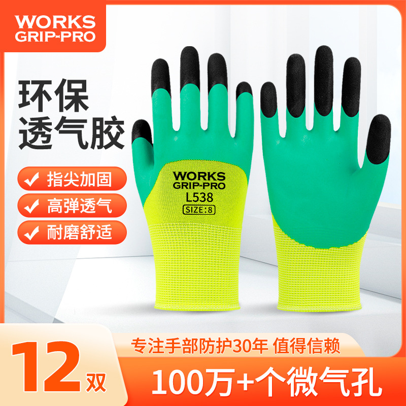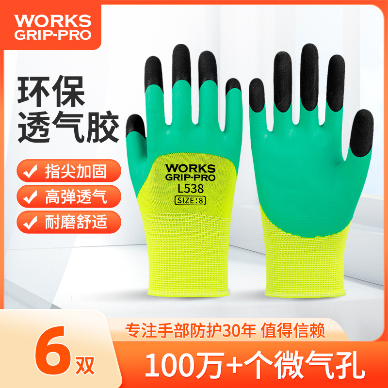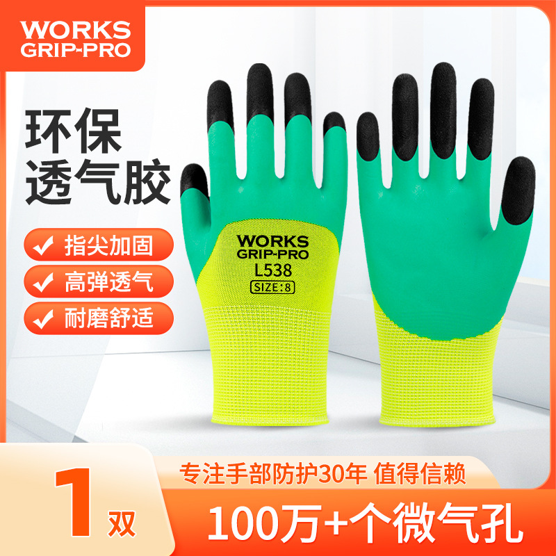 노동 보호 장갑, 건설 현장 작업용, 내마모성, 두꺼운, 고탄성, 통기성, 라텍스 발포 강화 손가락 작업용 장갑