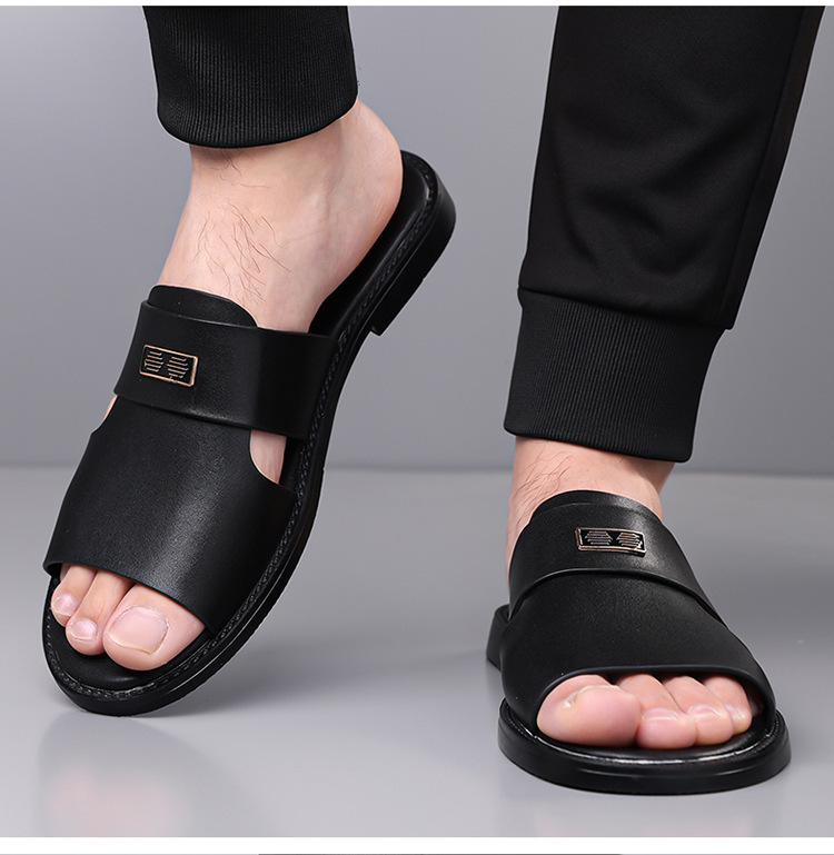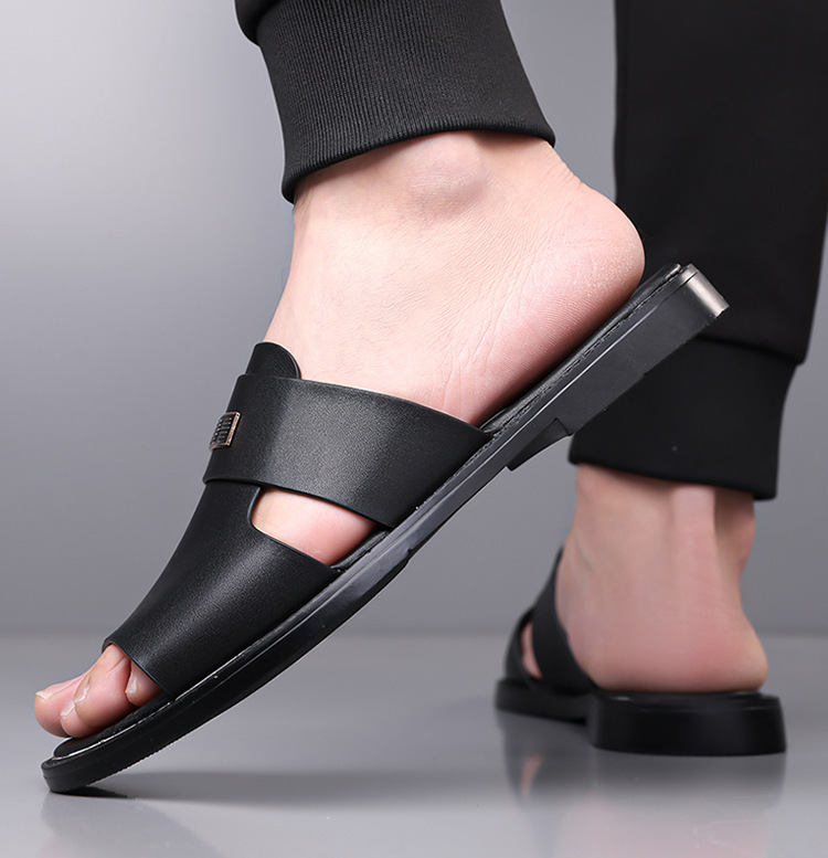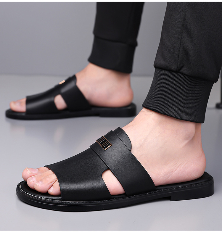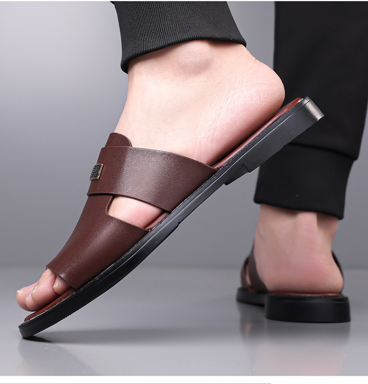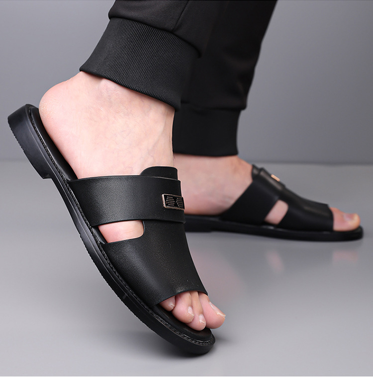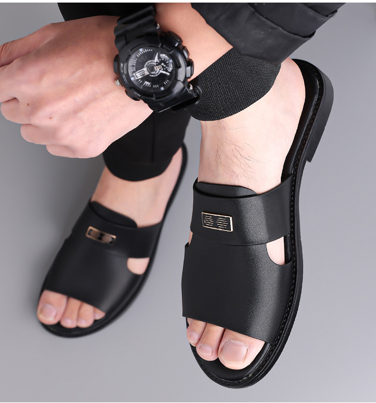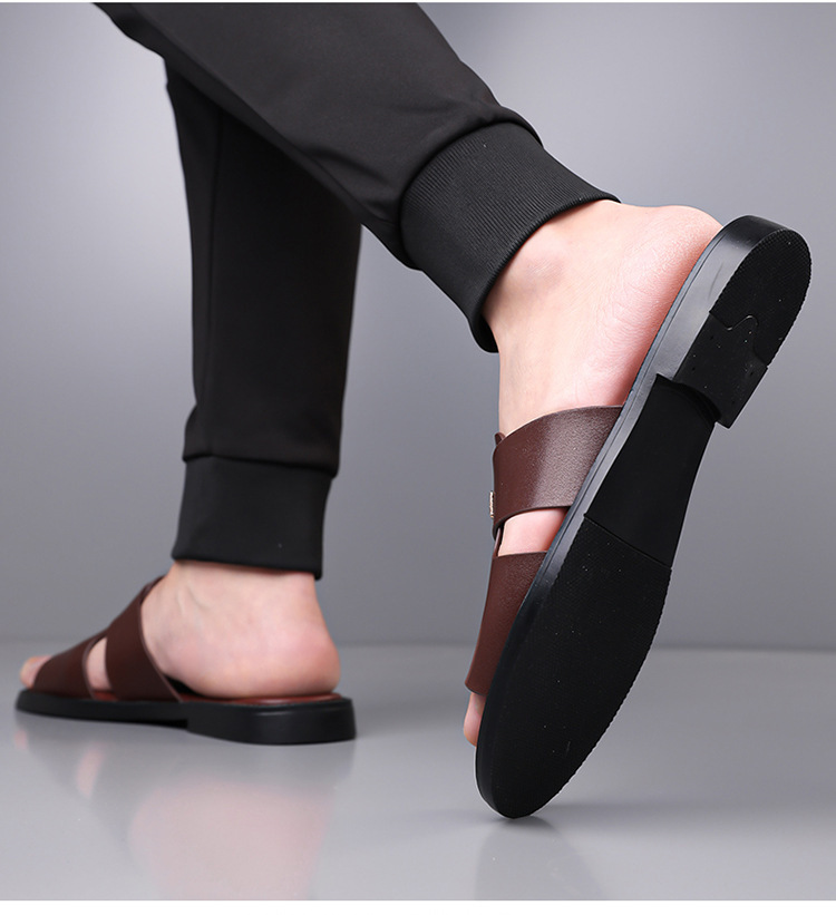 국경 간 TEMU 샌들 남성 여름 새로운 두꺼운 밑창 미끄럼 방지 캐주얼 비치 신발 아빠 남성용 이중 목적 외부 샌들 및 슬리퍼스토어 가기