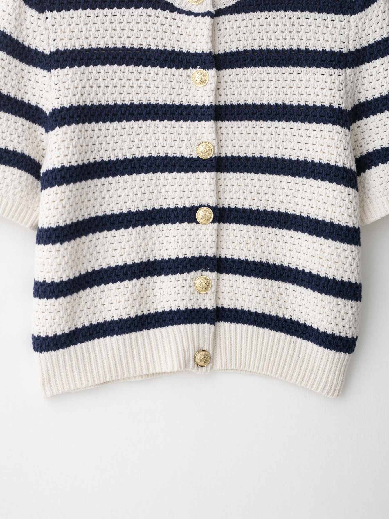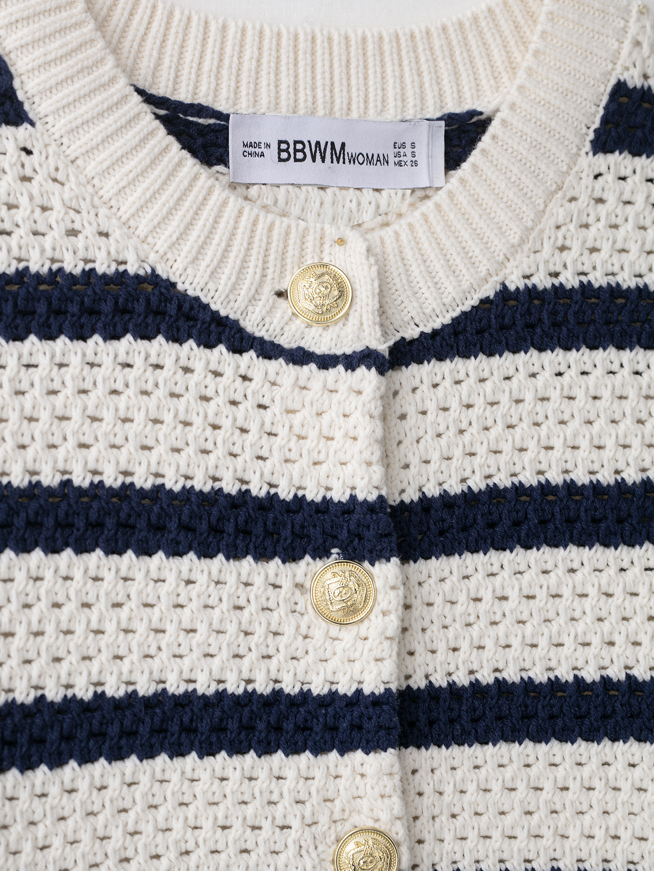 2025년 봄 신상 유럽풍 패션 만능 캐주얼 스트라이프 니트 가디건 (해외 무역 여성 의류)