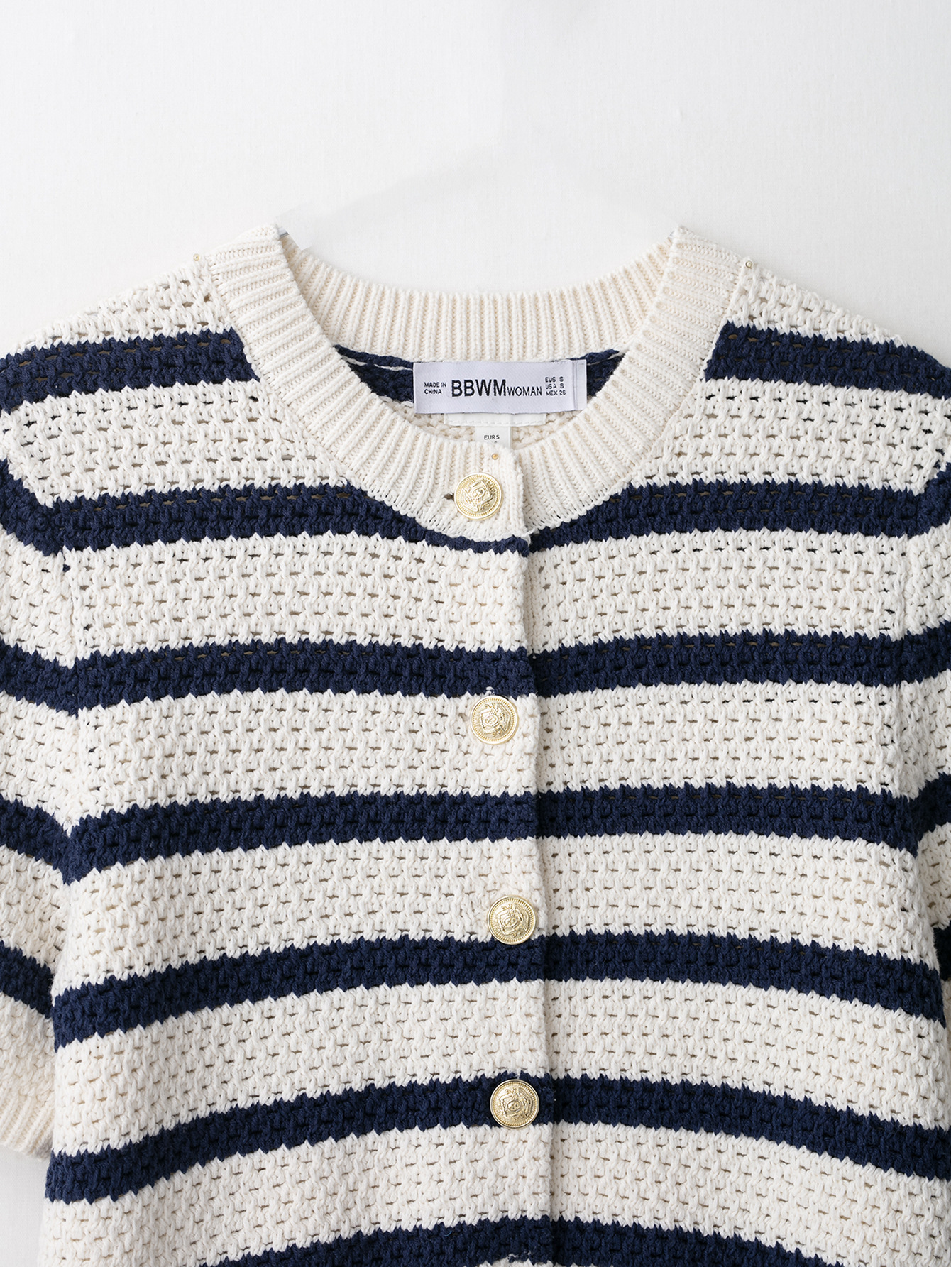 2025년 봄 신상 유럽풍 패션 만능 캐주얼 스트라이프 니트 가디건 (해외 무역 여성 의류)스토어 가기