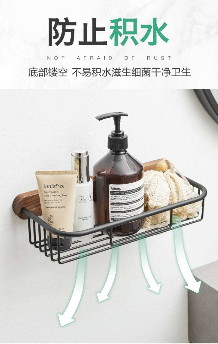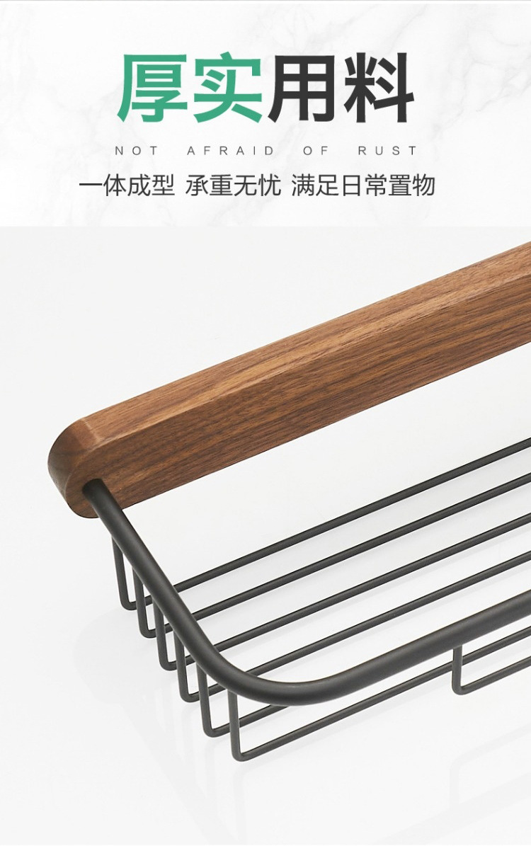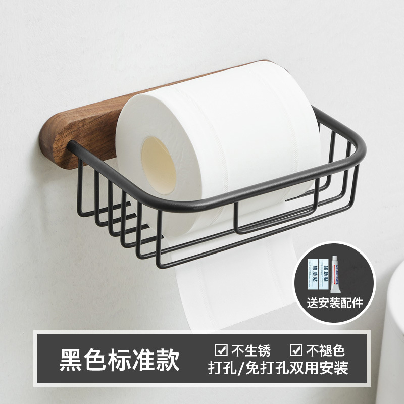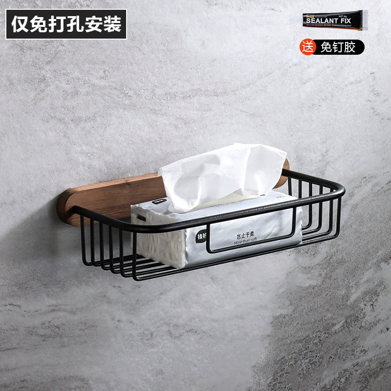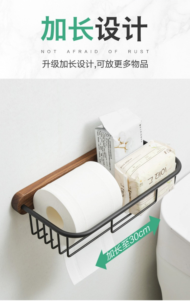 가벼운 고급 단단한 나무 수납 선반, 구멍이 없는 욕실 티슈 홀더, 종이 타월 선반, 호두 브러시드 골드 수납 선반스토어 가기