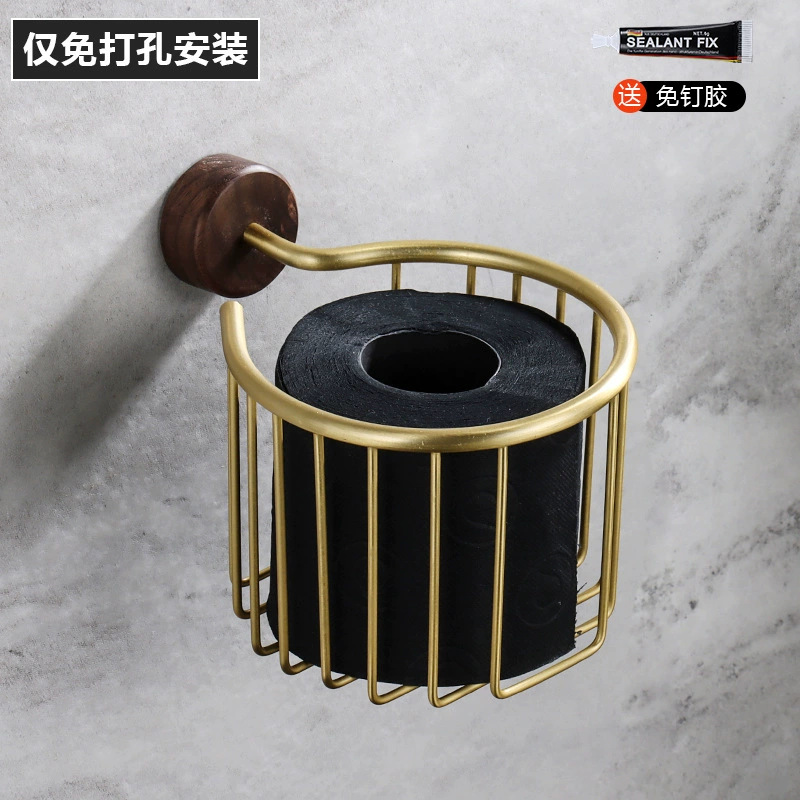 가벼운 고급 단단한 나무 수납 선반, 구멍이 없는 욕실 티슈 홀더, 종이 타월 선반, 호두 브러시드 골드 수납 선반