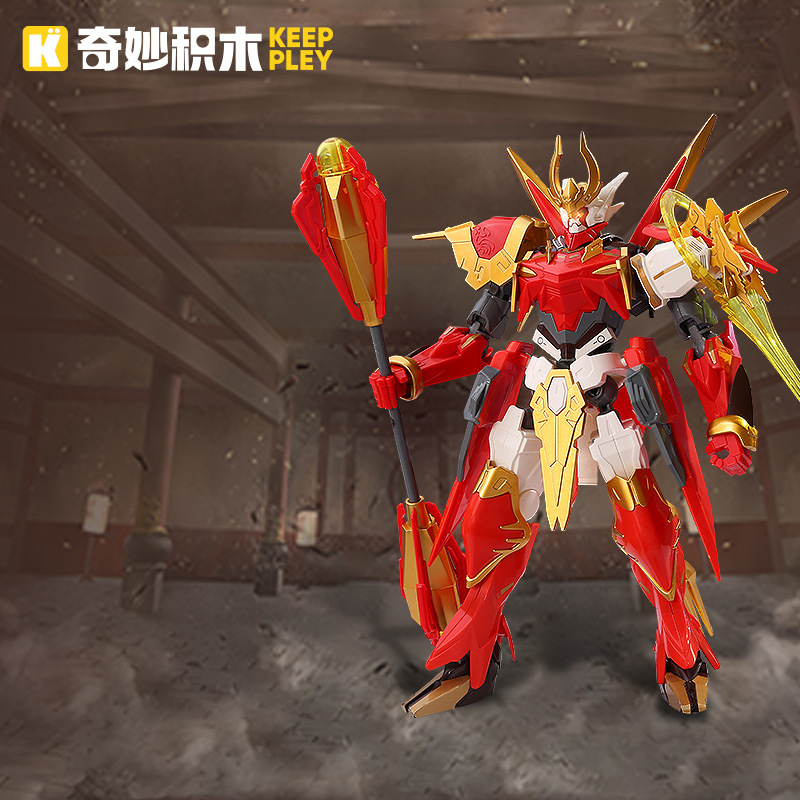 계몽주의 멋진 건물은 움직일 수있는 메카 모델 소년 장난감을 둘러싼 영광의 왕을 차단합니다.