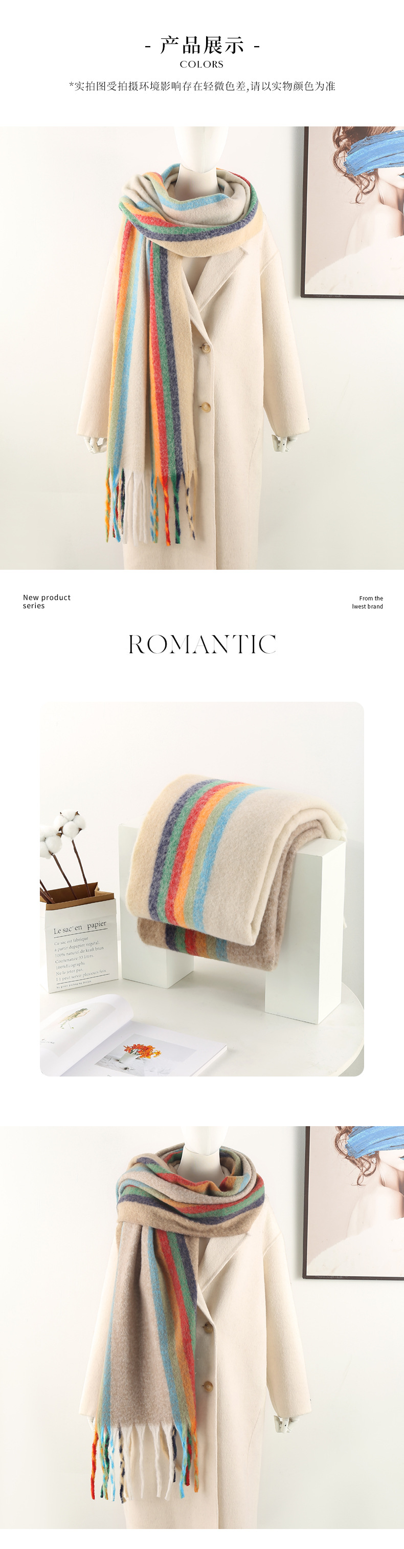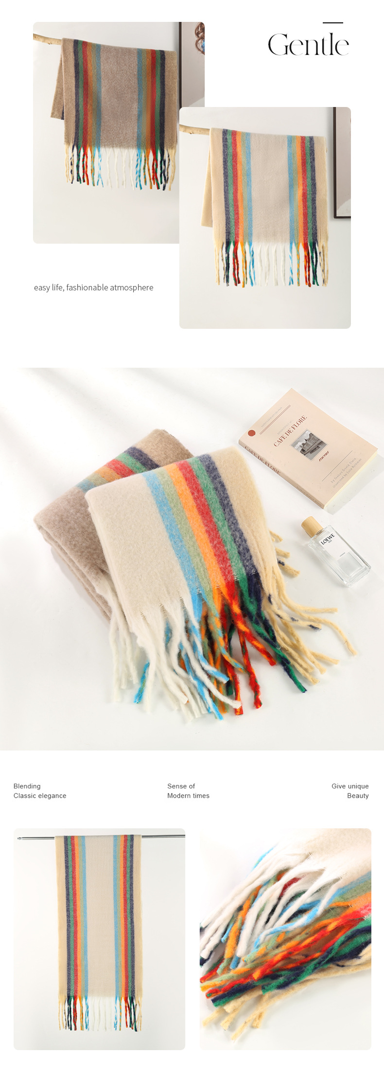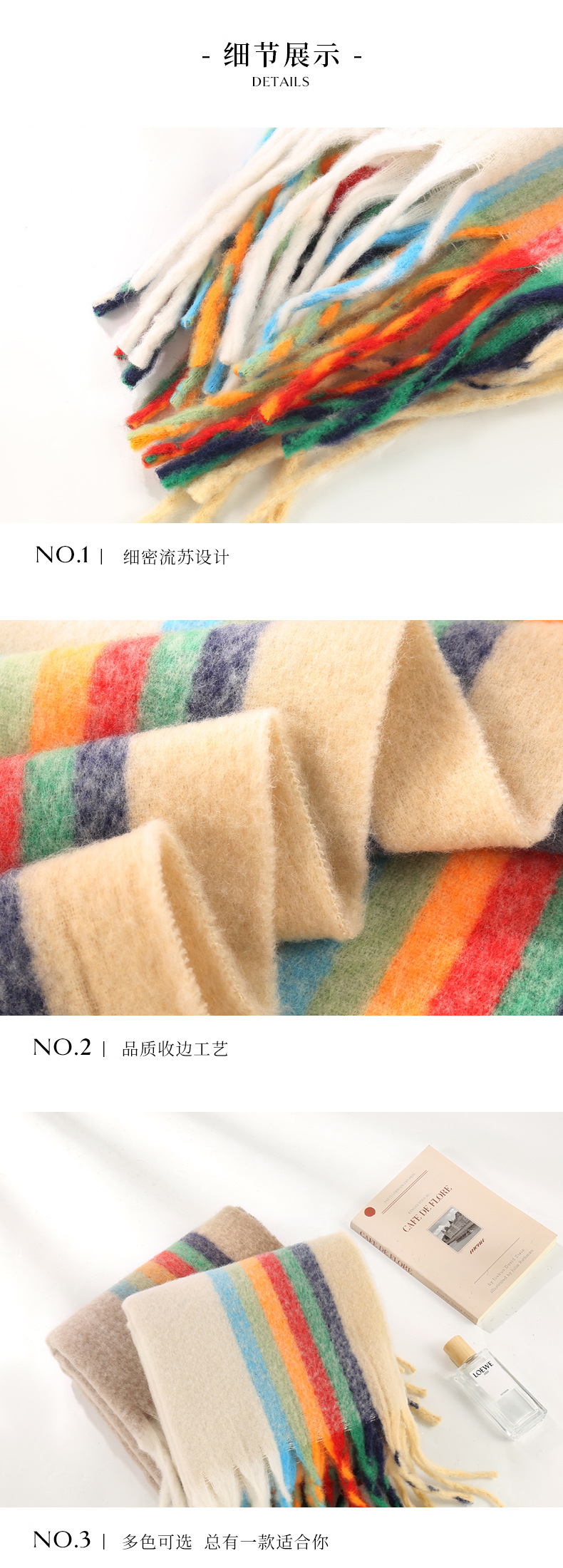 Ins 디자인 감각 무지개 모헤어 스카프 여성의 가을과 겨울 리베트 콘트라스트 컬러 줄무늬 술 목도리 조수 공장 도매스토어 가기