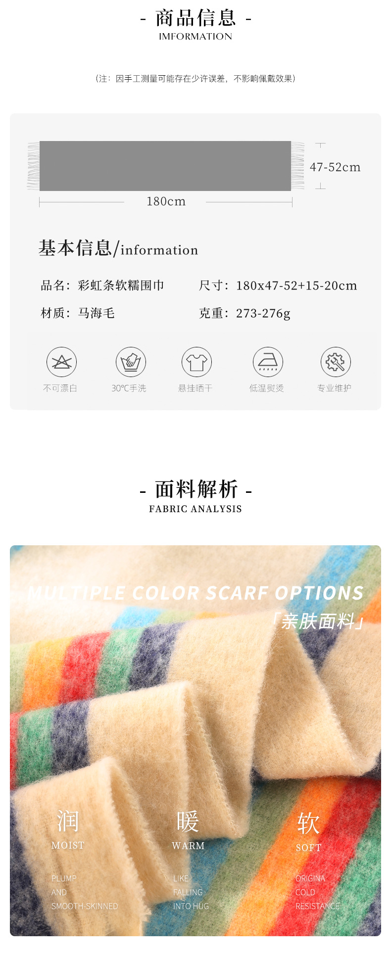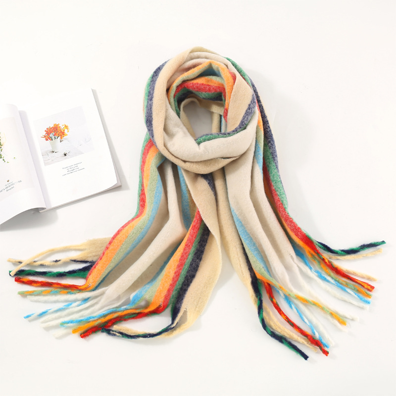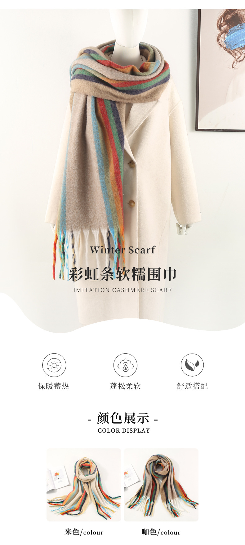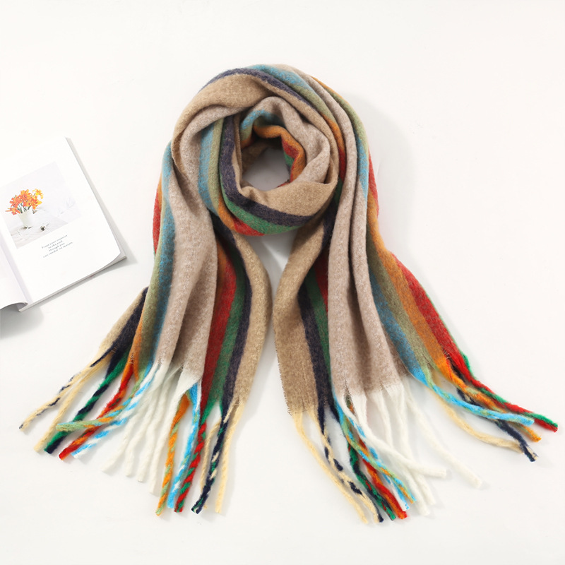 Ins 디자인 감각 무지개 모헤어 스카프 여성의 가을과 겨울 리베트 콘트라스트 컬러 줄무늬 술 목도리 조수 공장 도매스토어 가기