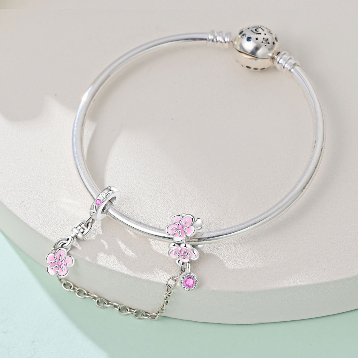 새로운 나비 꽃 참 교수형 구슬 안전 사슬 고정 버클 보석 팔찌 조각 흰색 구리 실버 도금 크로스 테두리스토어 가기