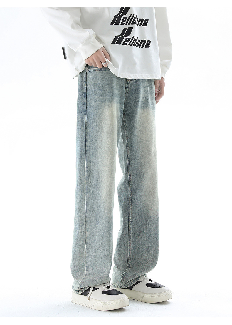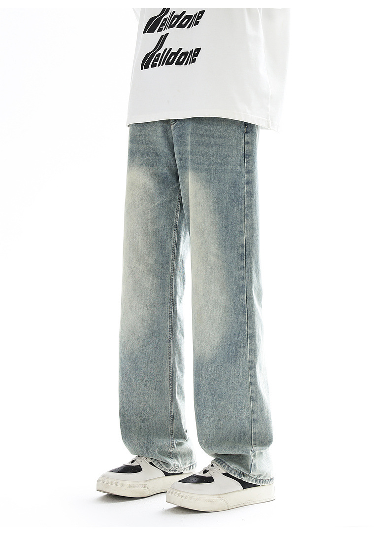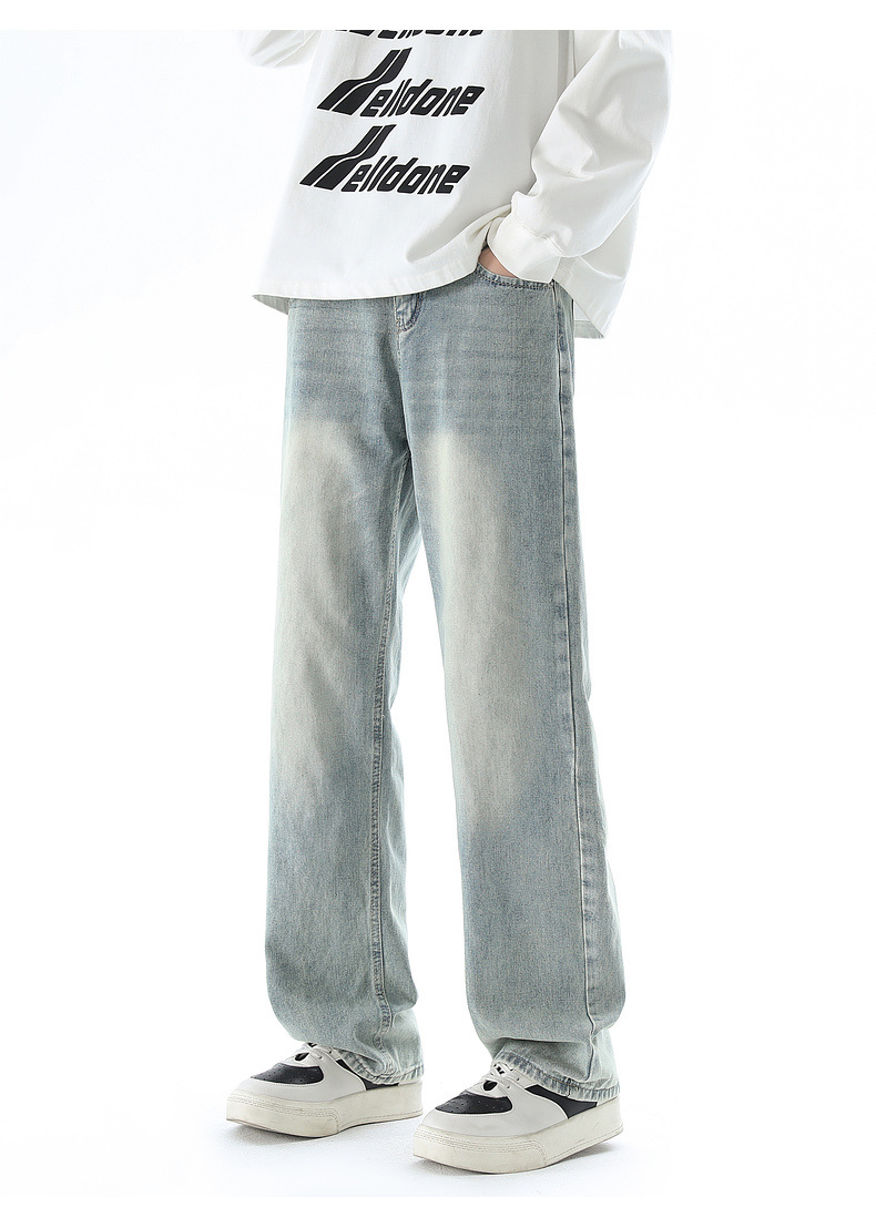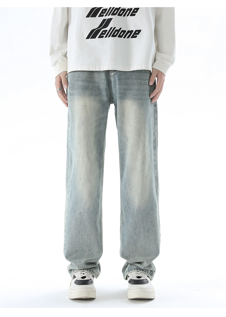 남성용 스트레이트 청바지, 트렌디한 하이 스트리트 레트로 워싱 디스트레스드 벨트 팬츠, 봄, 가을 스타일, 아메리칸 스타일 다용도 바지