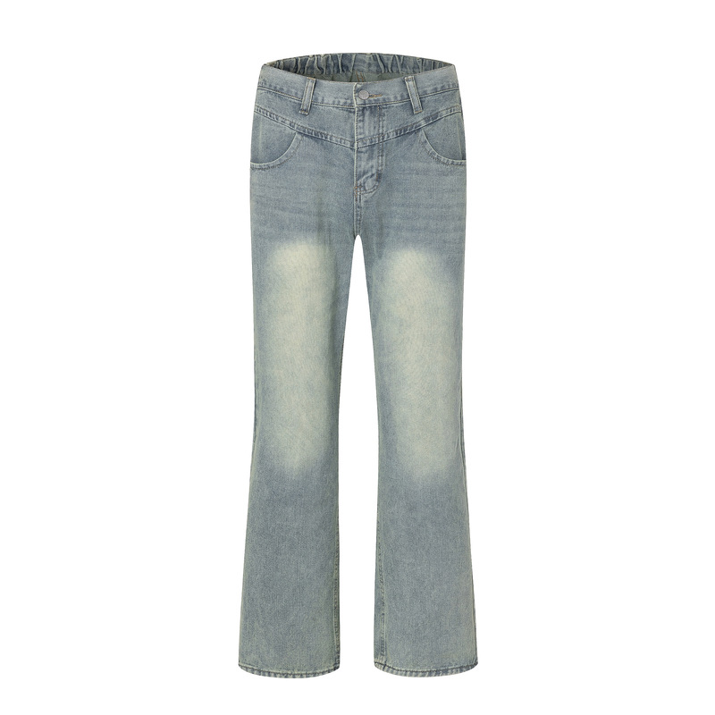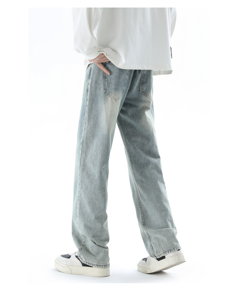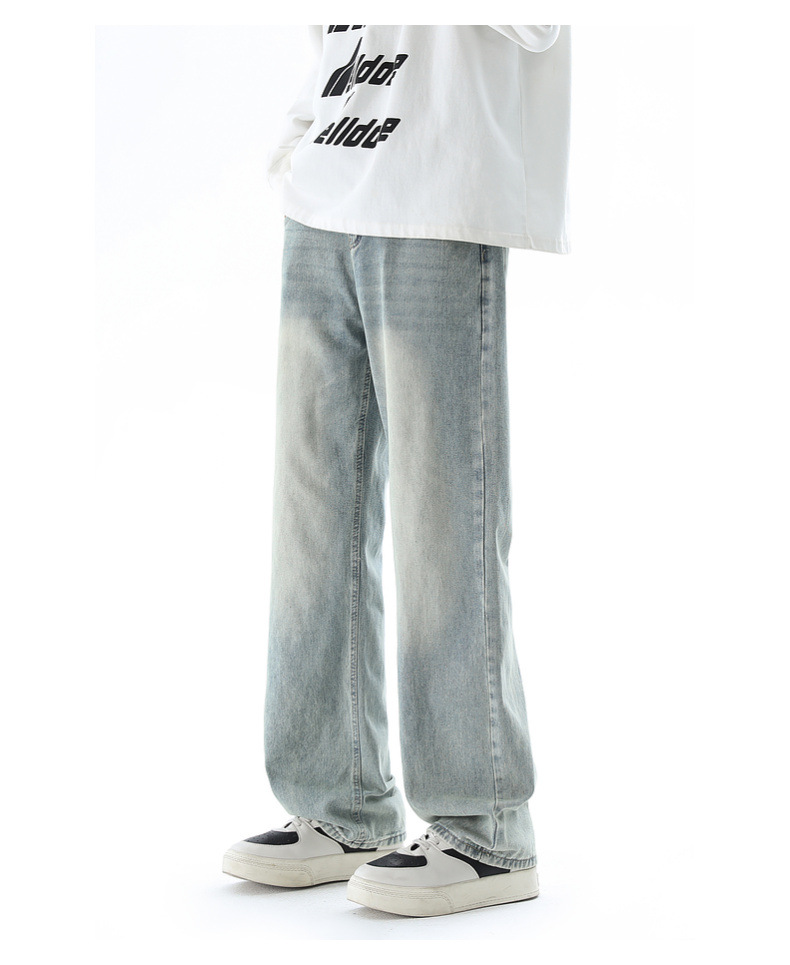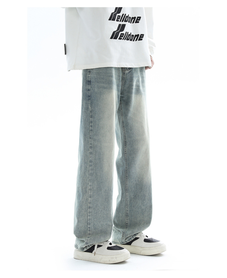 남성용 스트레이트 청바지, 트렌디한 하이 스트리트 레트로 워싱 디스트레스드 벨트 팬츠, 봄, 가을 스타일, 아메리칸 스타일 다용도 바지