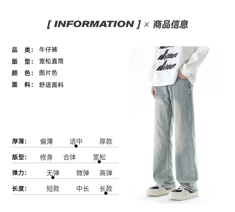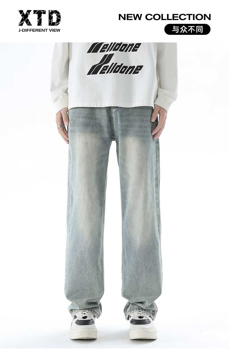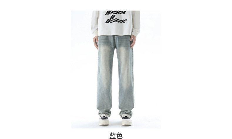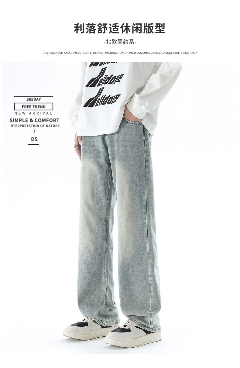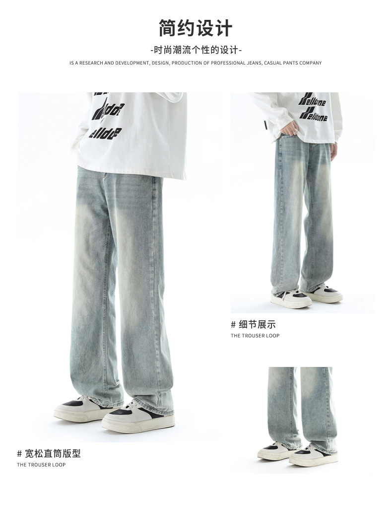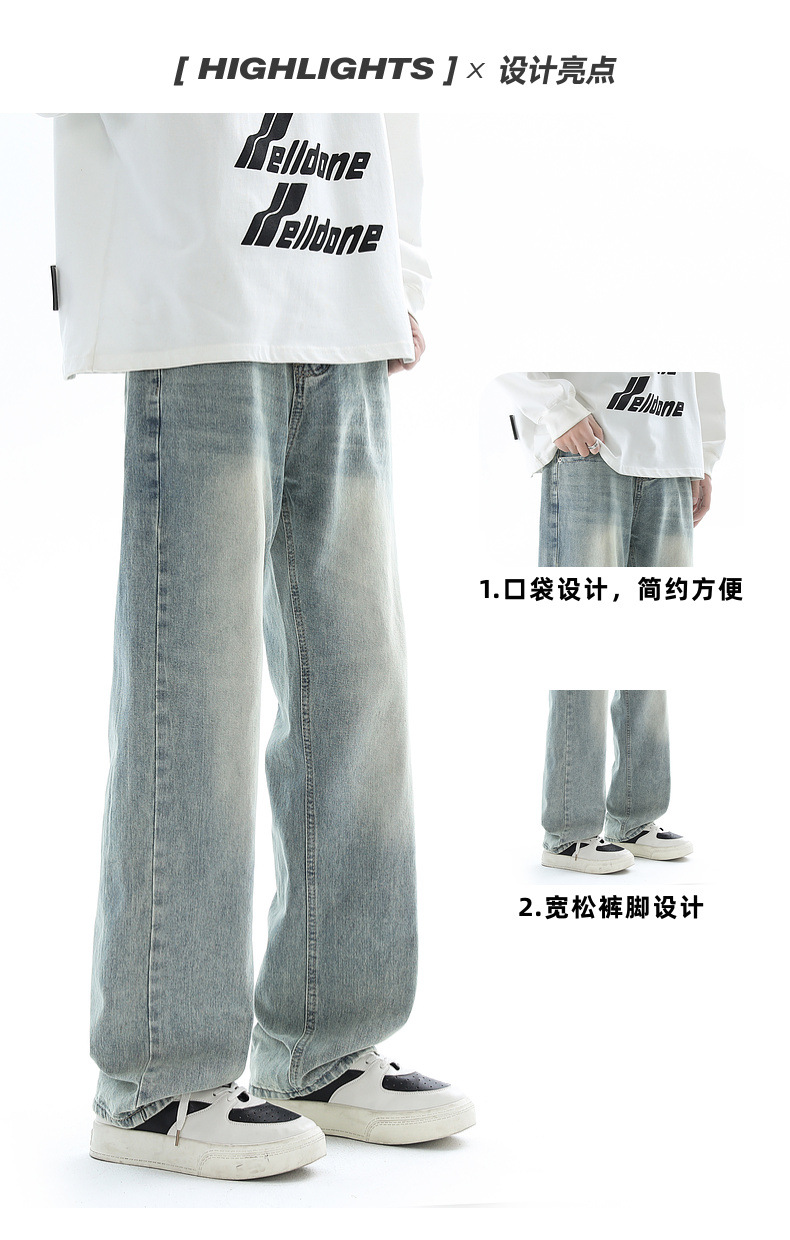 남성용 스트레이트 청바지, 트렌디한 하이 스트리트 레트로 워싱 디스트레스드 벨트 팬츠, 봄, 가을 스타일, 아메리칸 스타일 다용도 바지스토어 가기