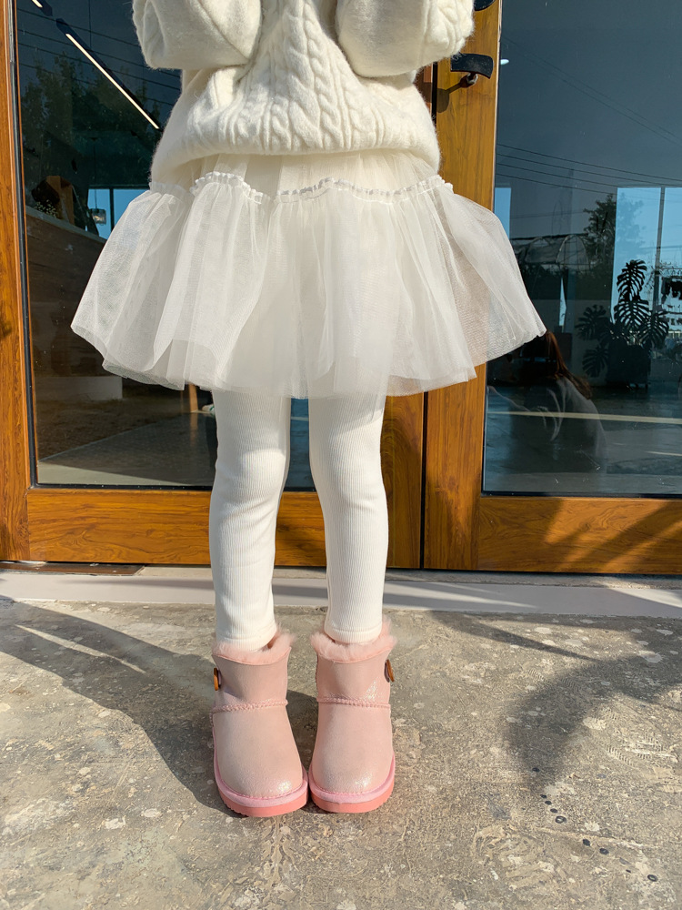 황금 콩 보어 소녀 레깅스 기모 가을과 겨울 아기 소녀 바지에 대한 새로운 어린이 가짜 2 피스 거즈 문화스토어 가기