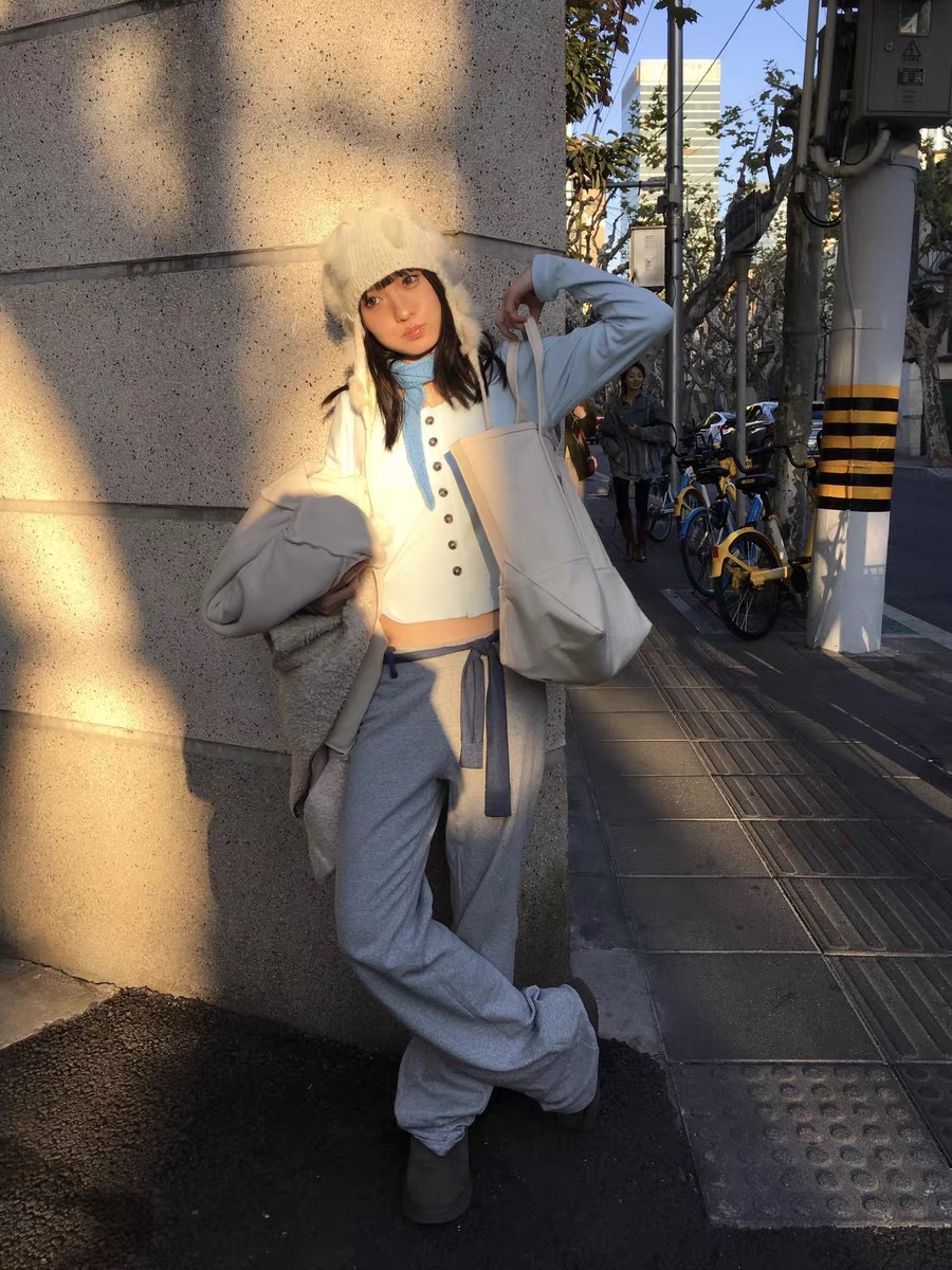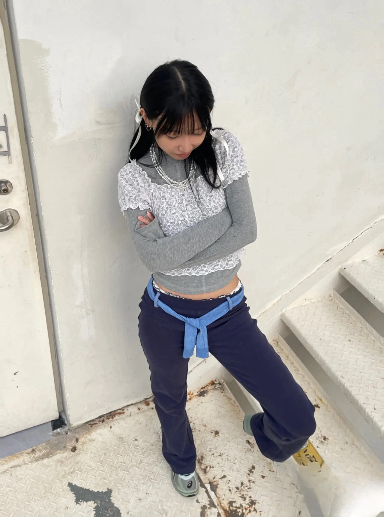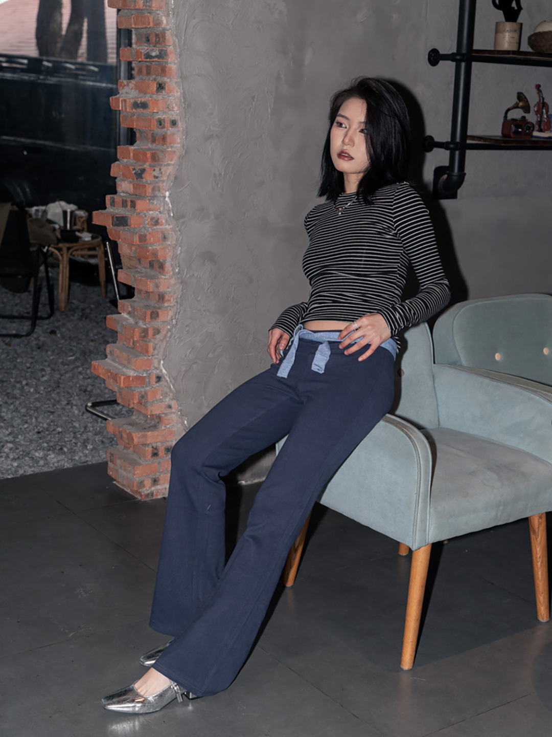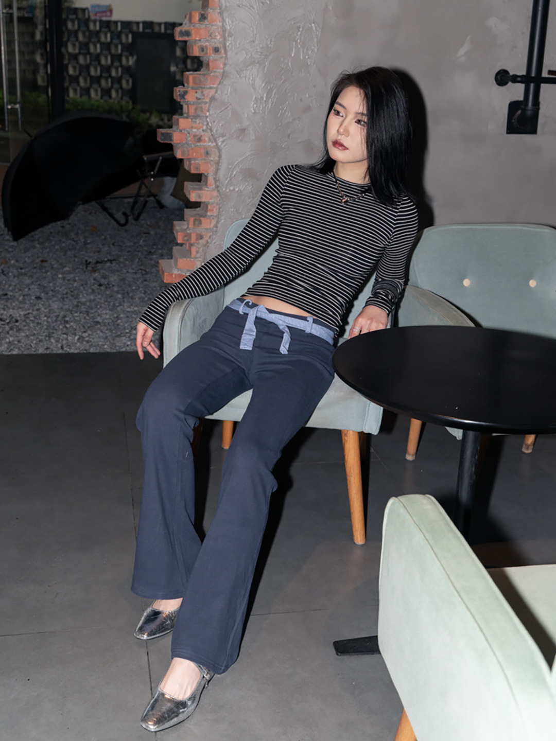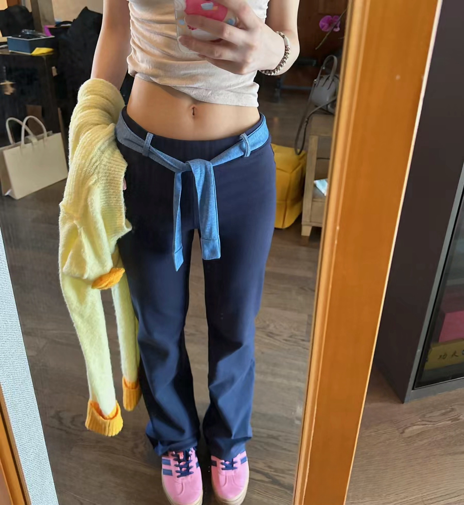 2 색 피부 친화적 인 편안한 스포츠 캐주얼 바지 벨트 대비 컬러 스트랩 미드 웨이스트 마이크로 혼 바지 여성 3250스토어 가기