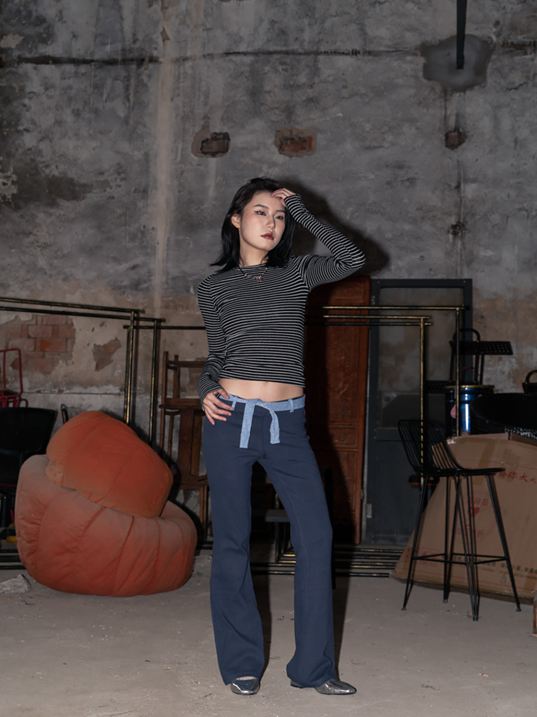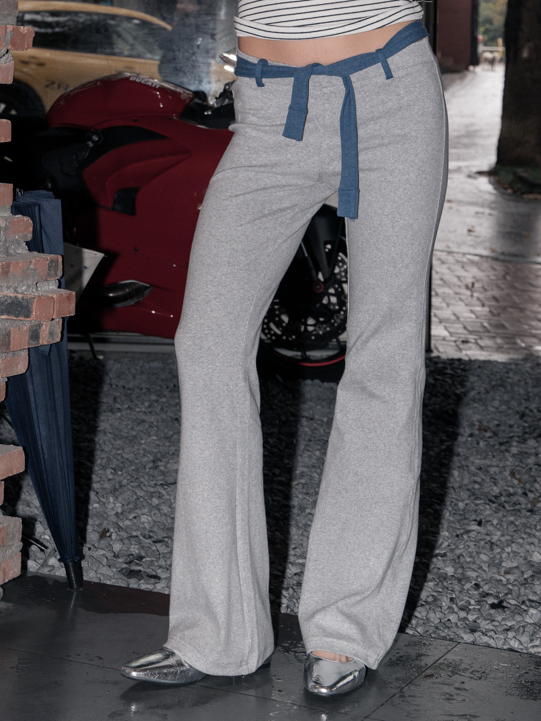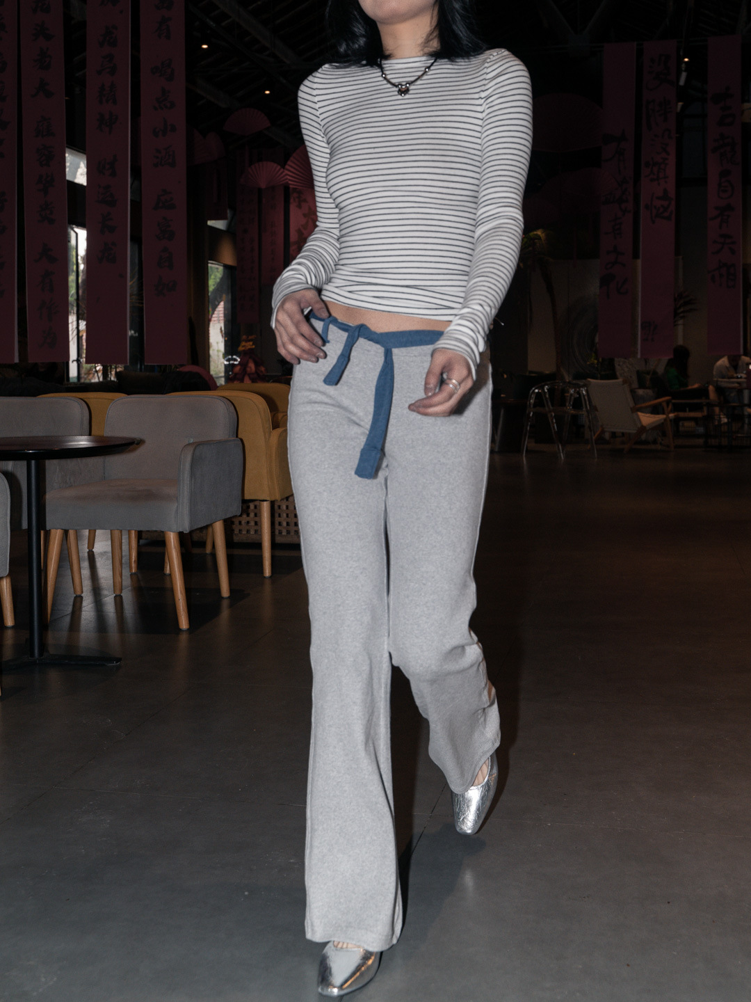 2 색 피부 친화적 인 편안한 스포츠 캐주얼 바지 벨트 대비 컬러 스트랩 미드 웨이스트 마이크로 혼 바지 여성 3250