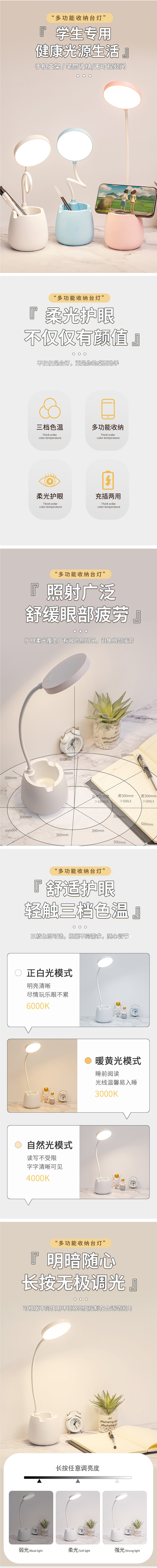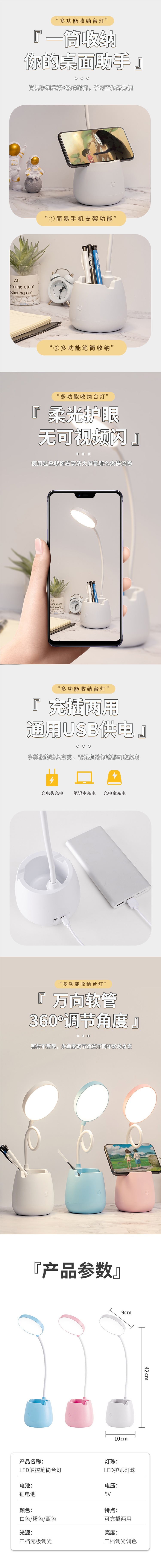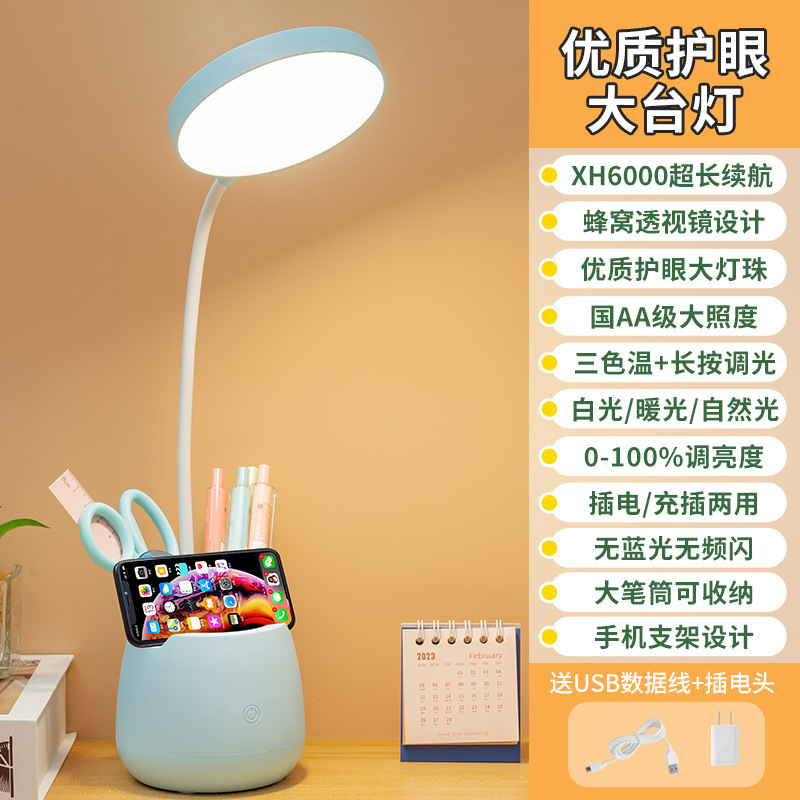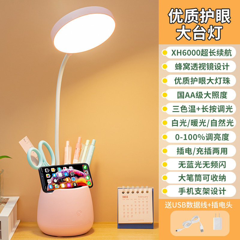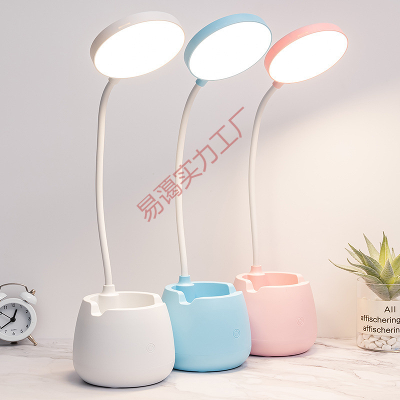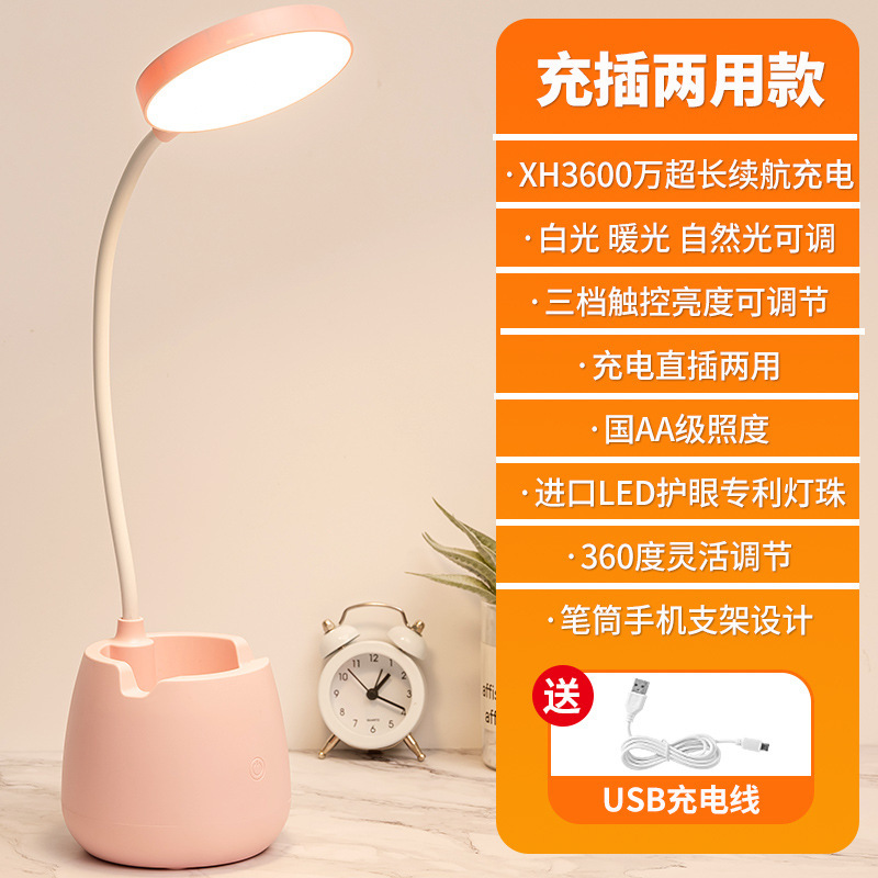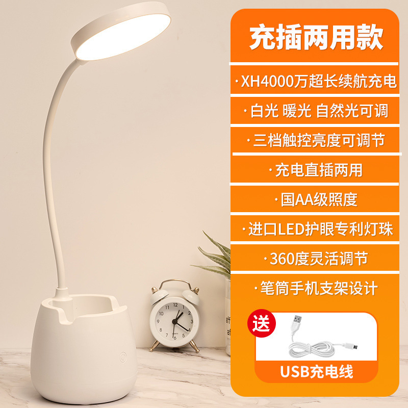 LED 3단 터치 디밍 독서 램프 USB 충전 플러그인 흰색 따뜻한 빛 눈 보호 학생 펜 홀더 작은 테이블 램프