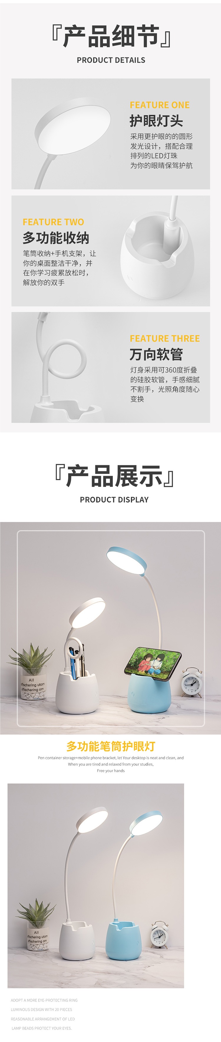 LED 3단 터치 디밍 독서 램프 USB 충전 플러그인 흰색 따뜻한 빛 눈 보호 학생 펜 홀더 작은 테이블 램프스토어 가기