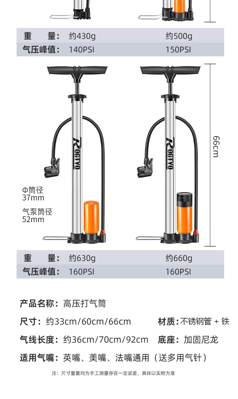 스테인레스 스틸 고압 펌프 자전거 전기 오토바이 휴대용 자동차 풍선 펌프 농구 수영 반지 가정용 공기 파이프