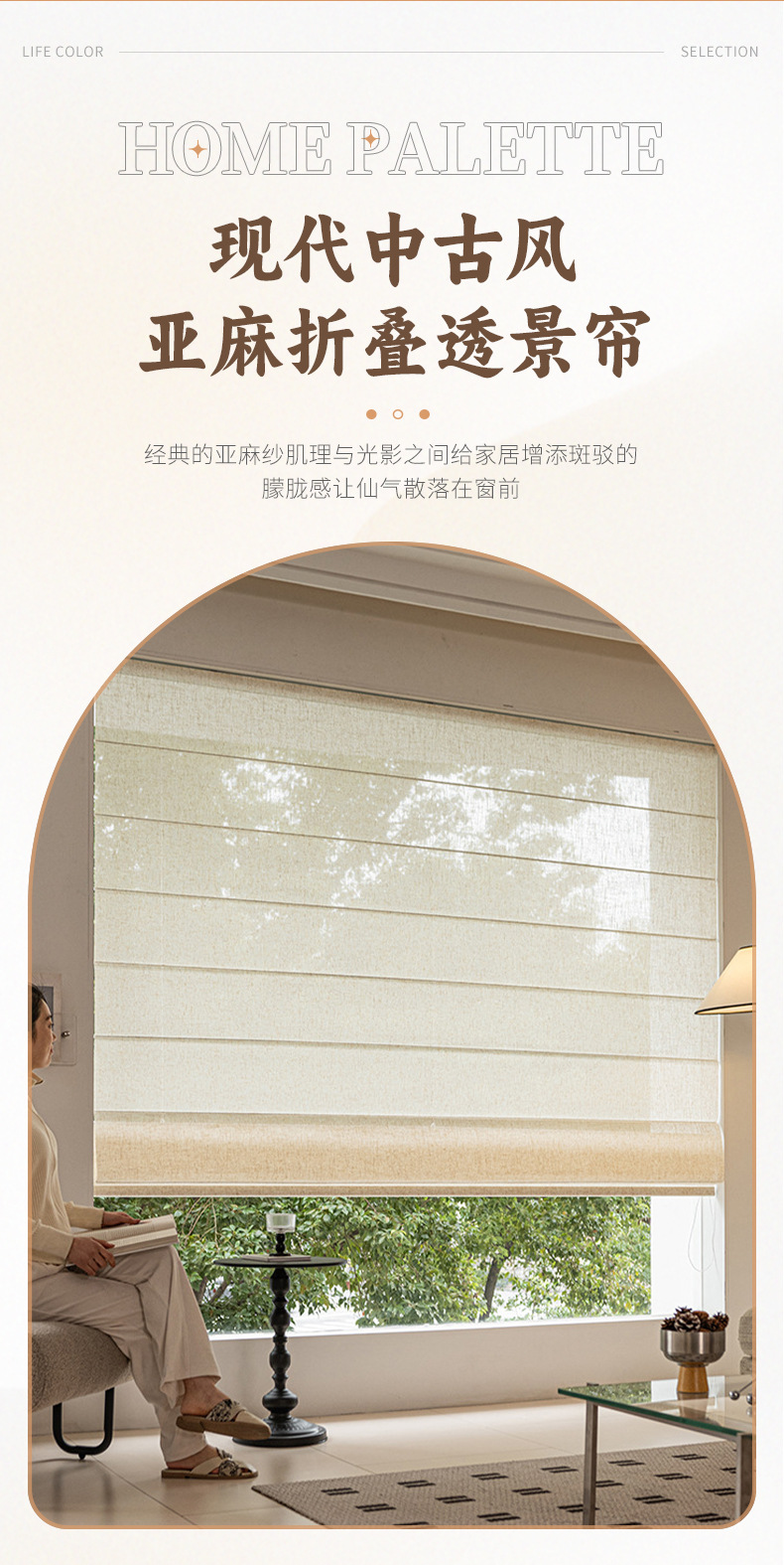 현대 중간 고대 스타일 린넨 접이식 창 커튼 거실 리프팅 음영 커튼 침실 솔리드 컬러 단열 롤러 커튼스토어 가기