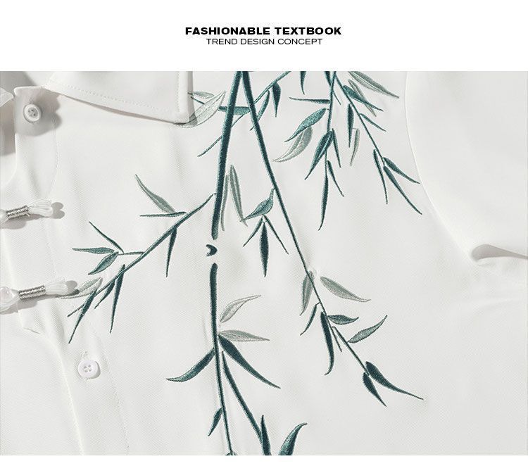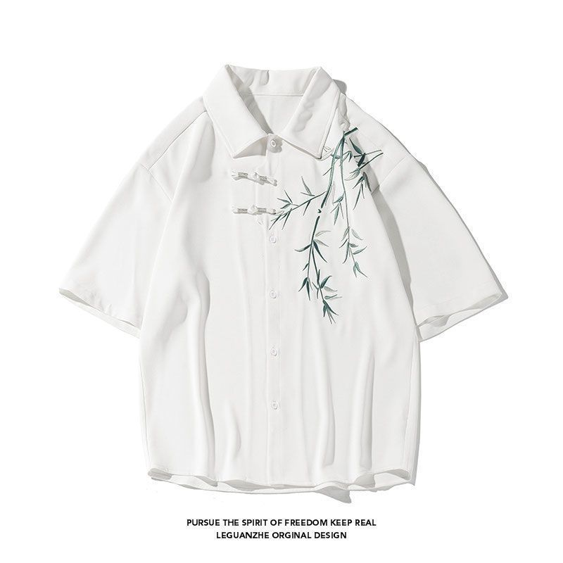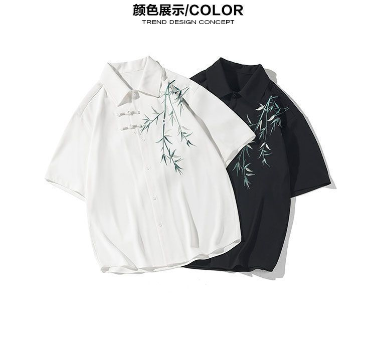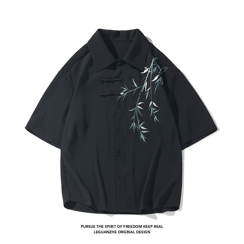2024 여름 새로운 중국 스타일 국가 스타일 셔츠 반팔 남성 일본 복고풍 트렌드 느슨한 캐주얼 대나무 자수 셔츠