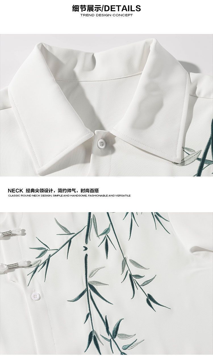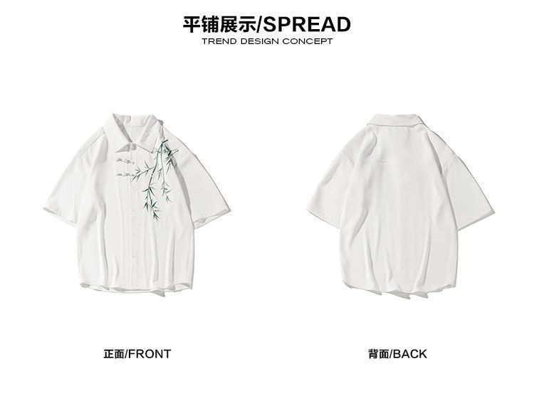 2024 여름 새로운 중국 스타일 국가 스타일 셔츠 반팔 남성 일본 복고풍 트렌드 느슨한 캐주얼 대나무 자수 셔츠스토어 가기