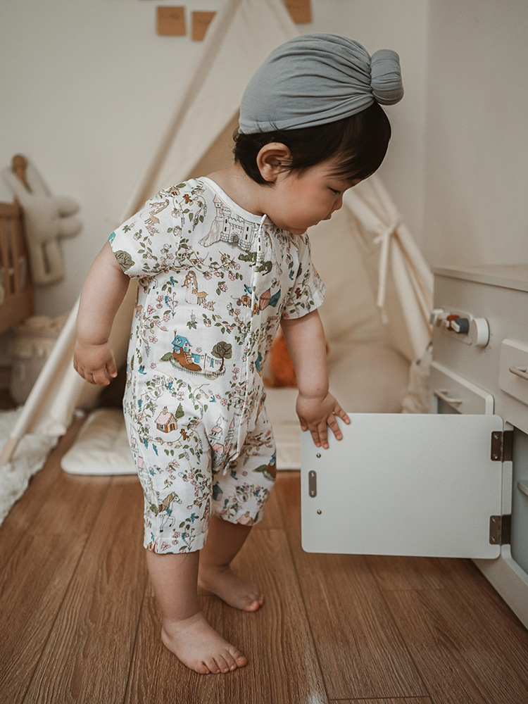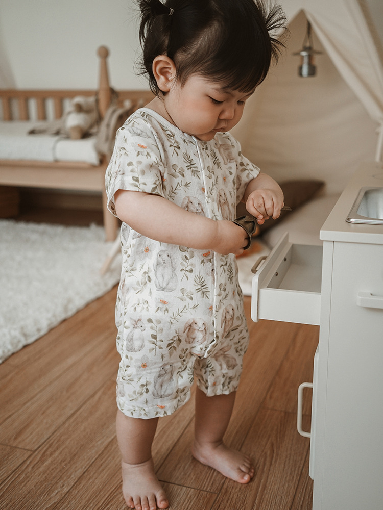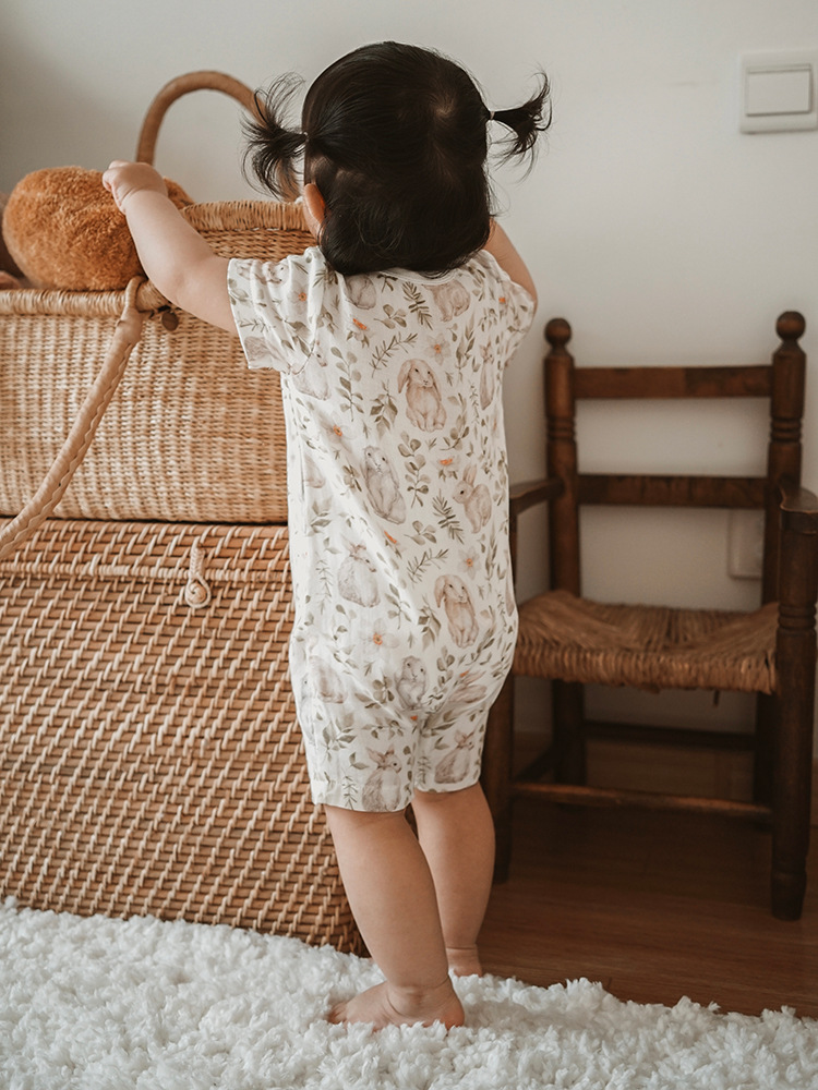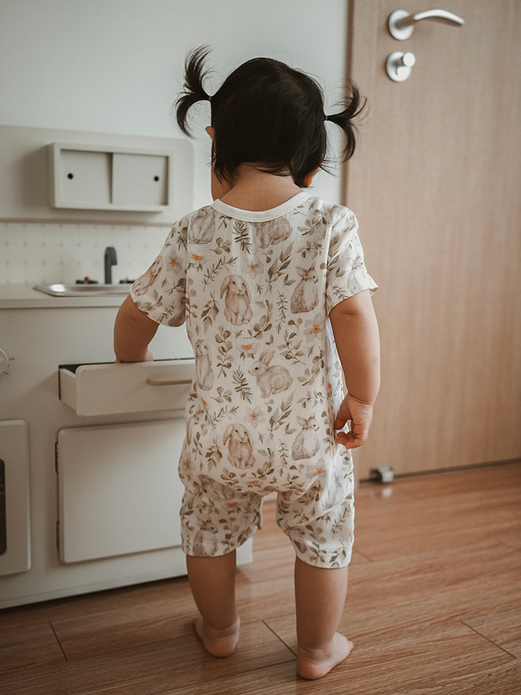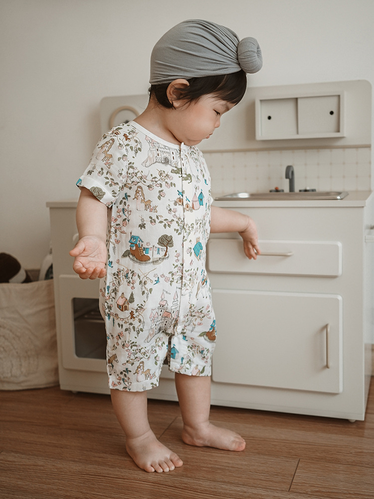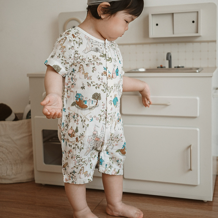 2025 여름 아기 대나무 면 점프 슈트 카테고리 a 아기 거즈 점프 슈트 아기 옷 얇은 아기 크롤링 슈트스토어 가기