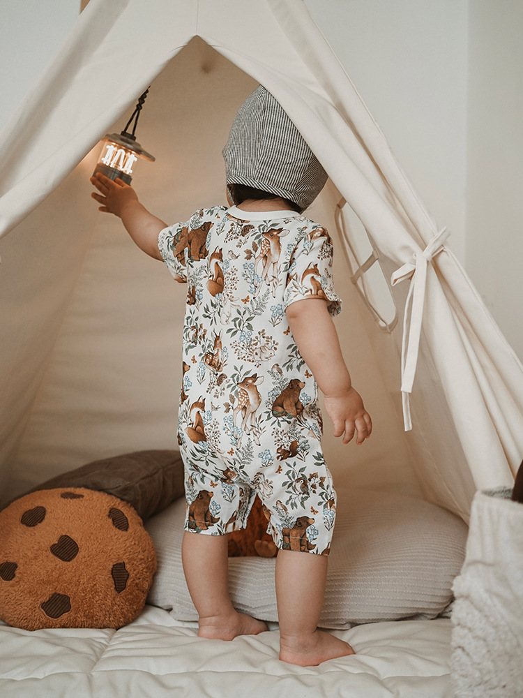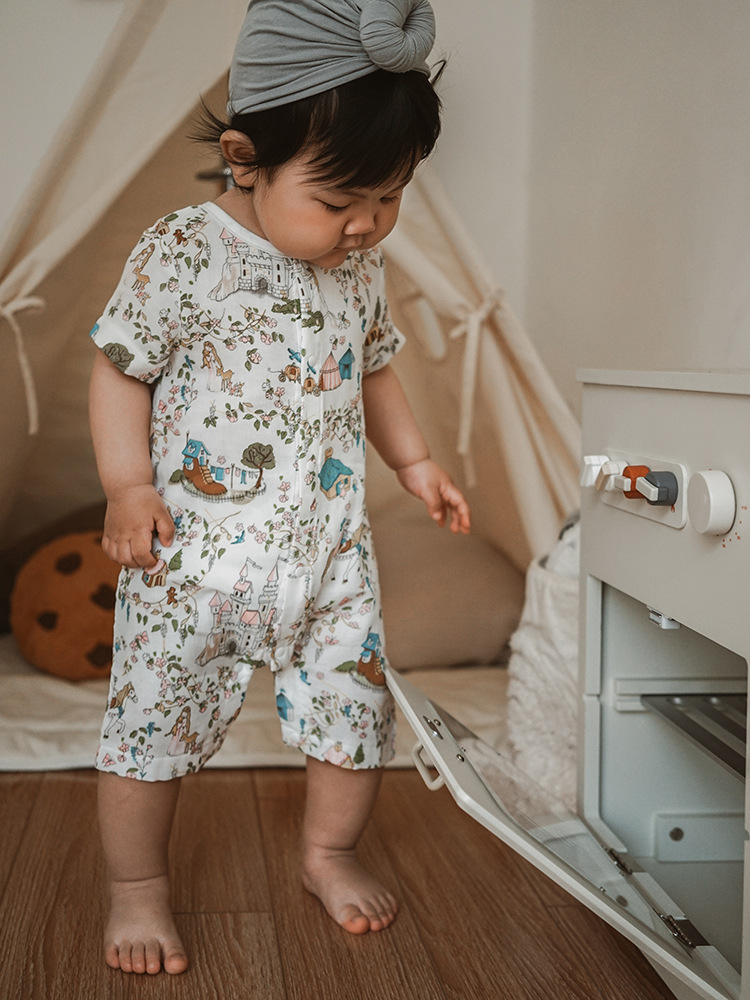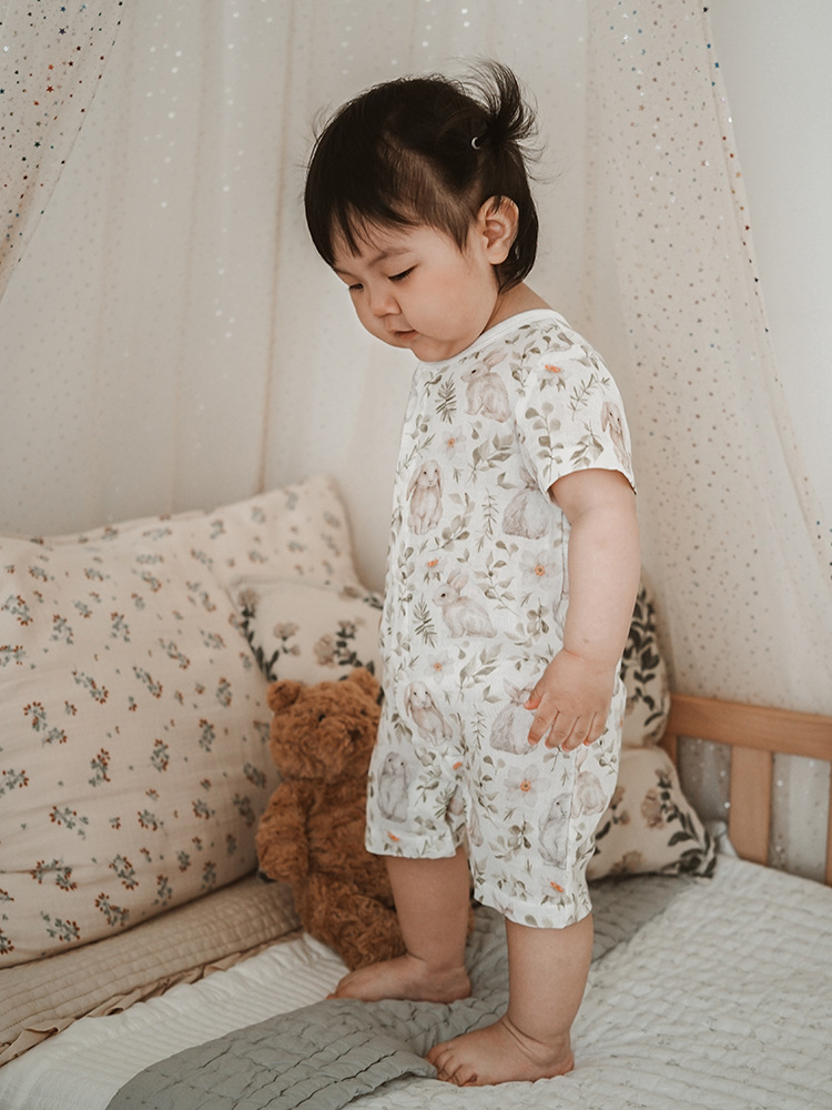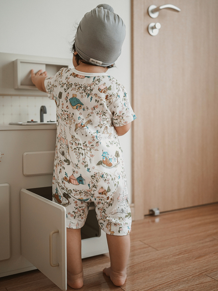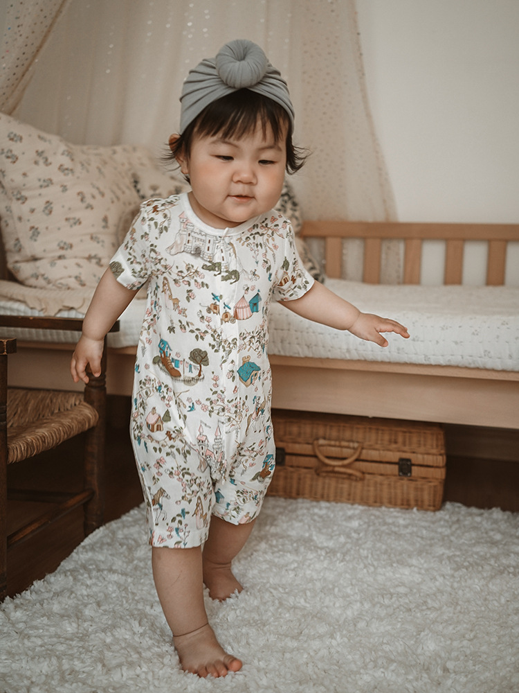 2025 여름 아기 대나무 면 점프 슈트 카테고리 a 아기 거즈 점프 슈트 아기 옷 얇은 아기 크롤링 슈트스토어 가기