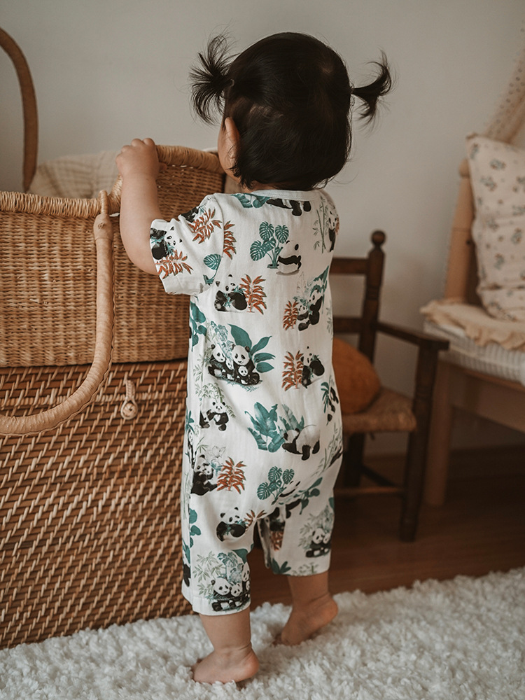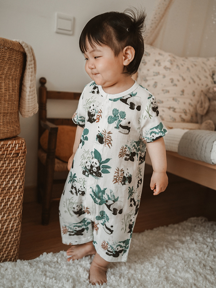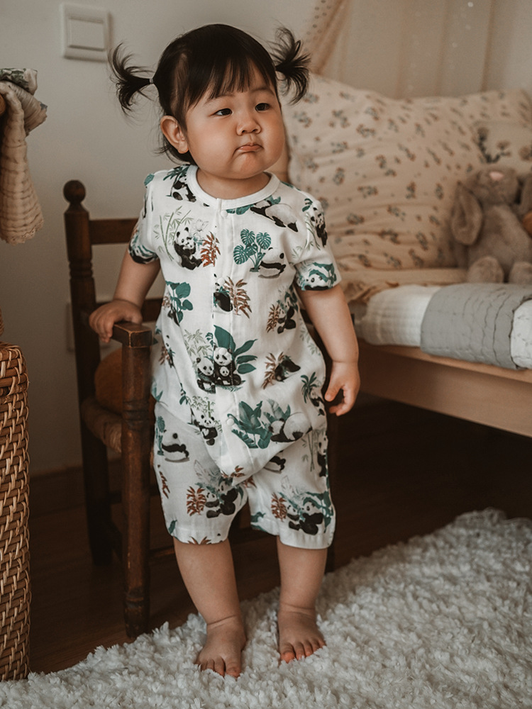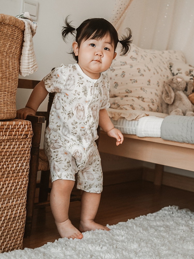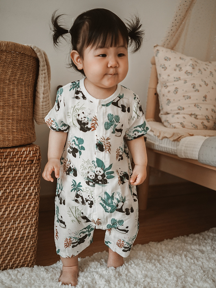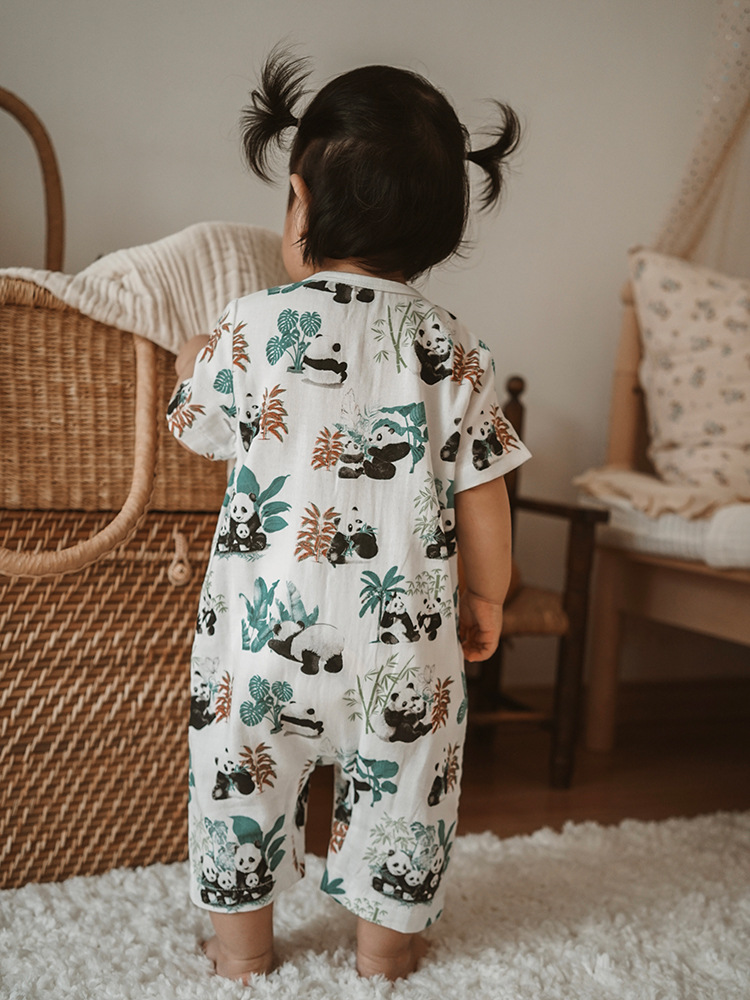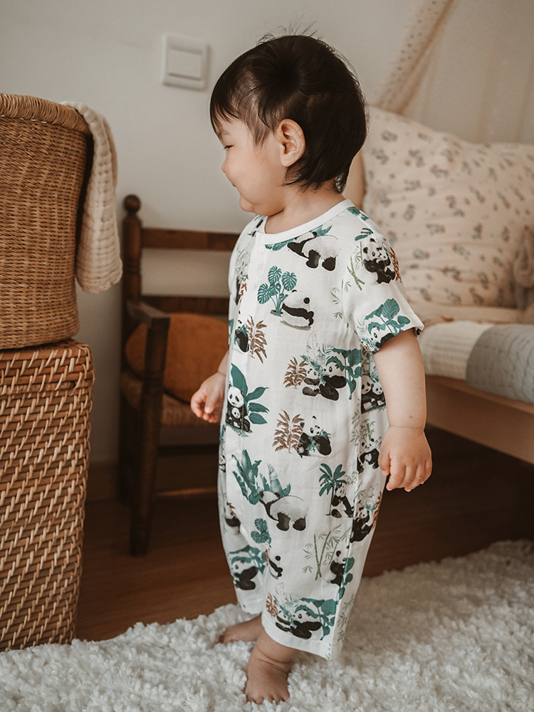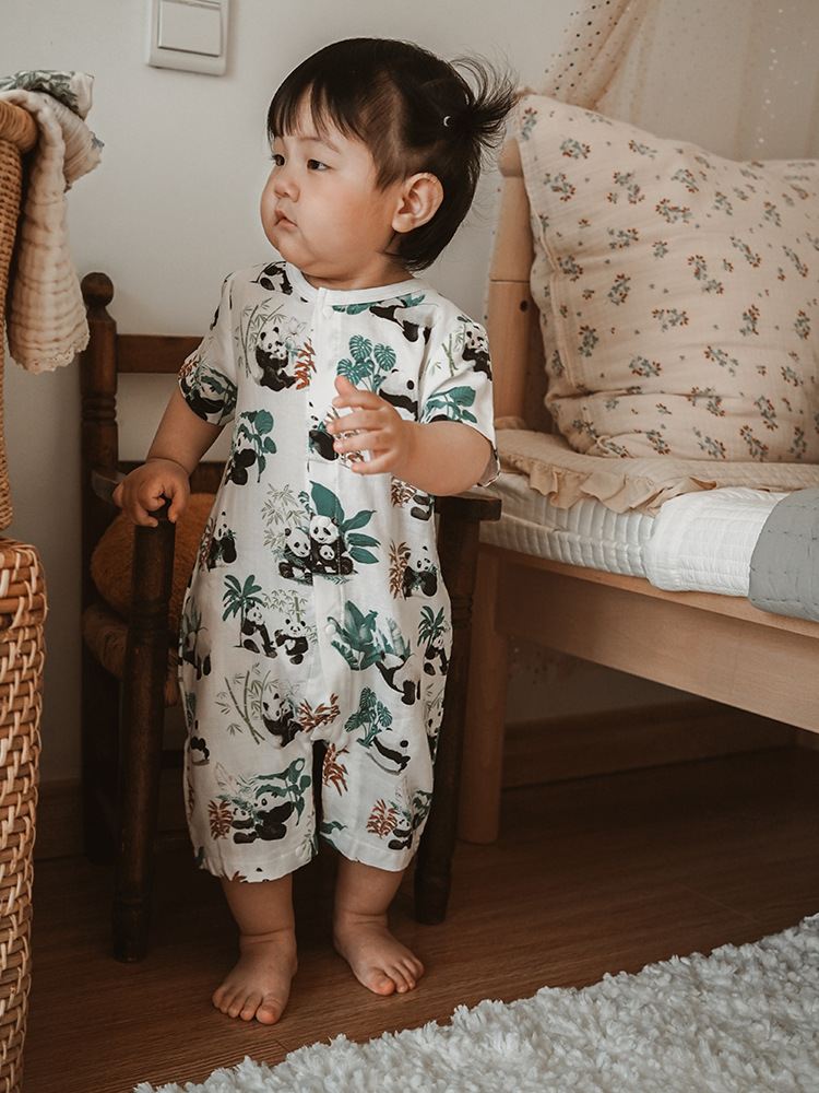 2025 여름 아기 대나무 면 점프 슈트 카테고리 a 아기 거즈 점프 슈트 아기 옷 얇은 아기 크롤링 슈트